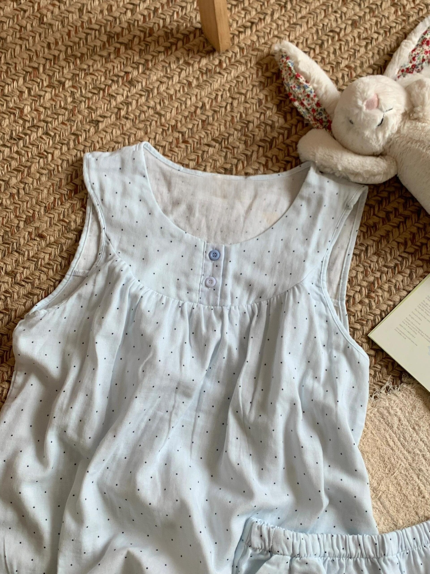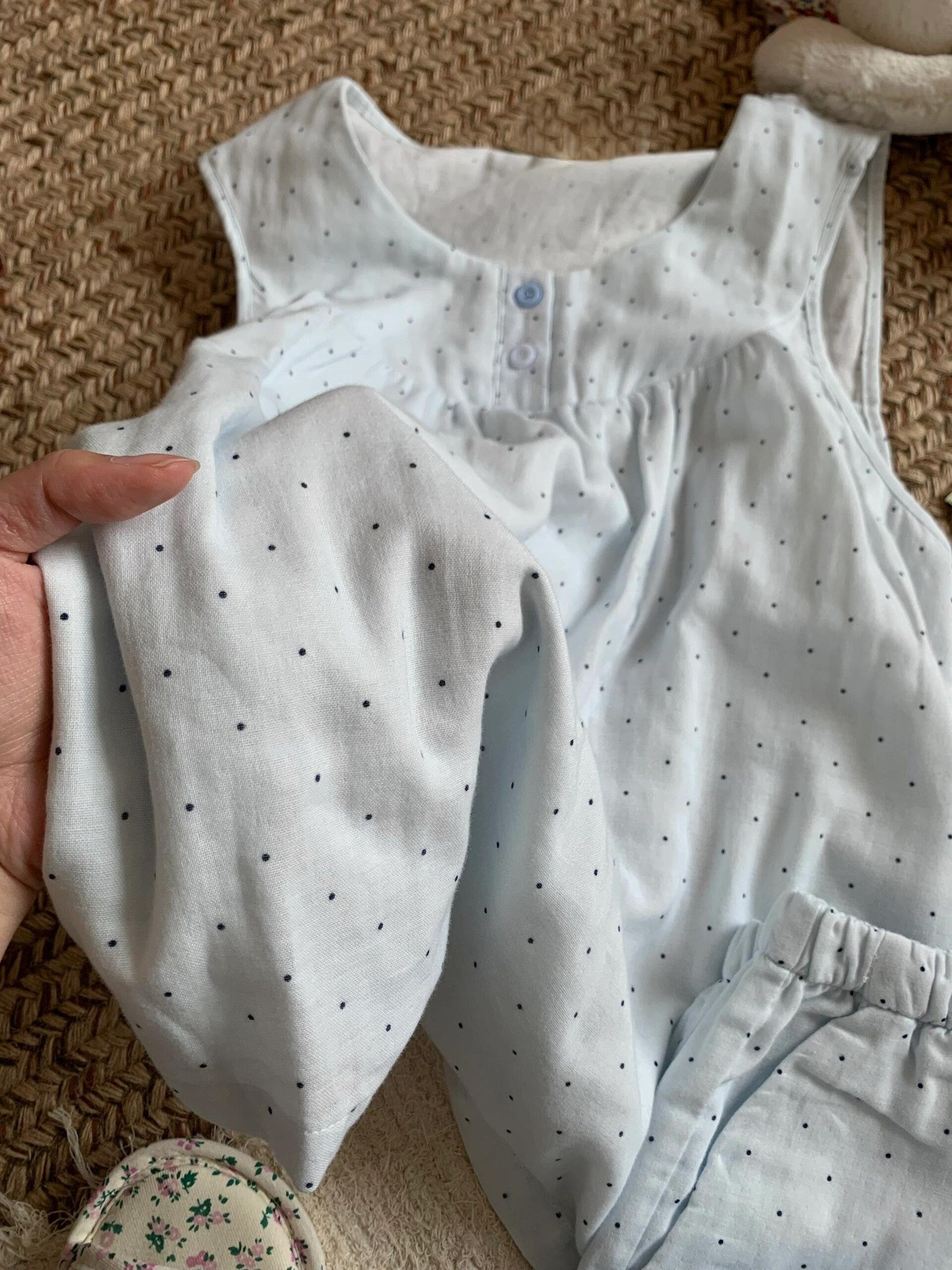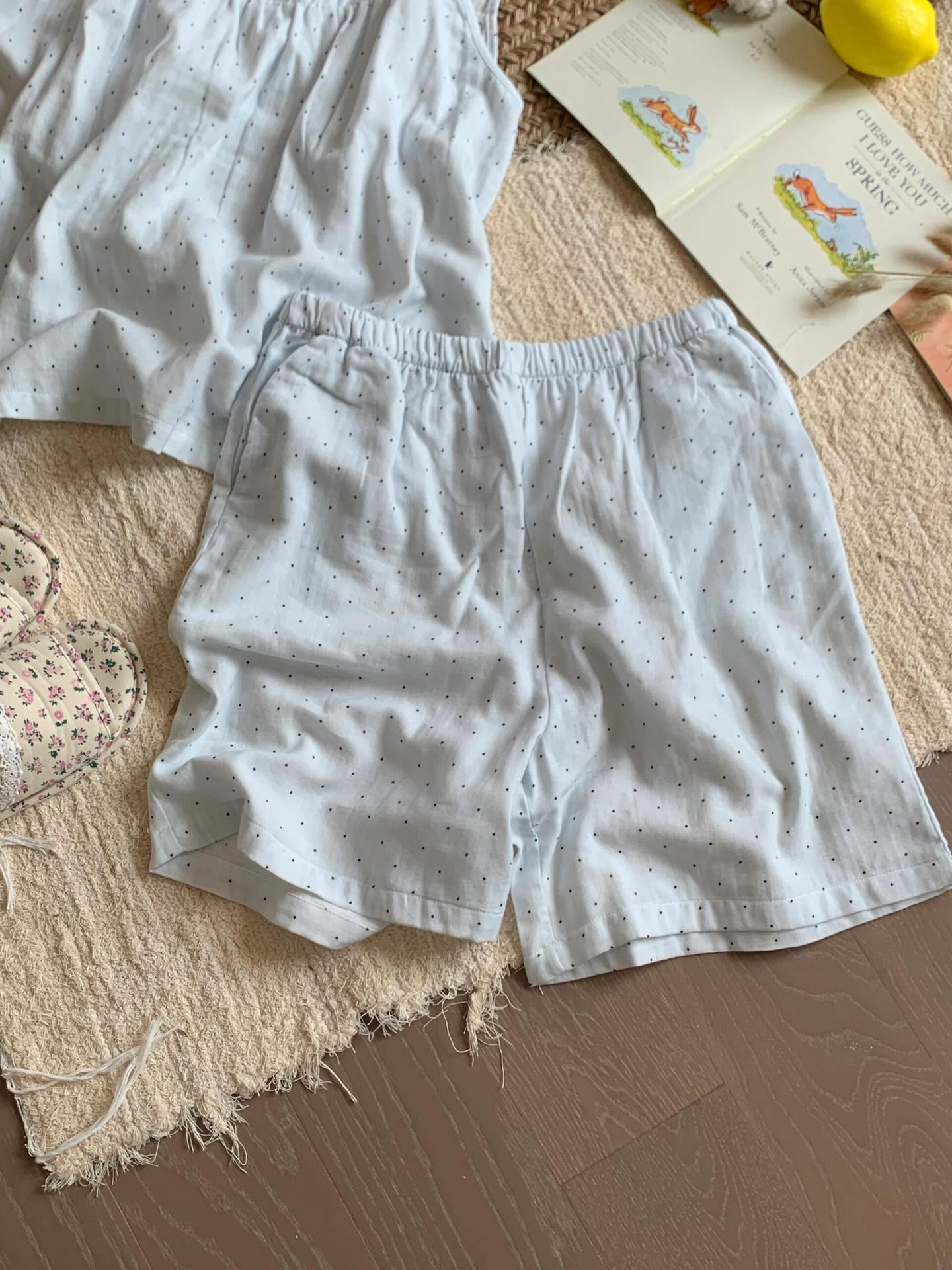 • 파란색 물방울 무늬 조끼 반바지