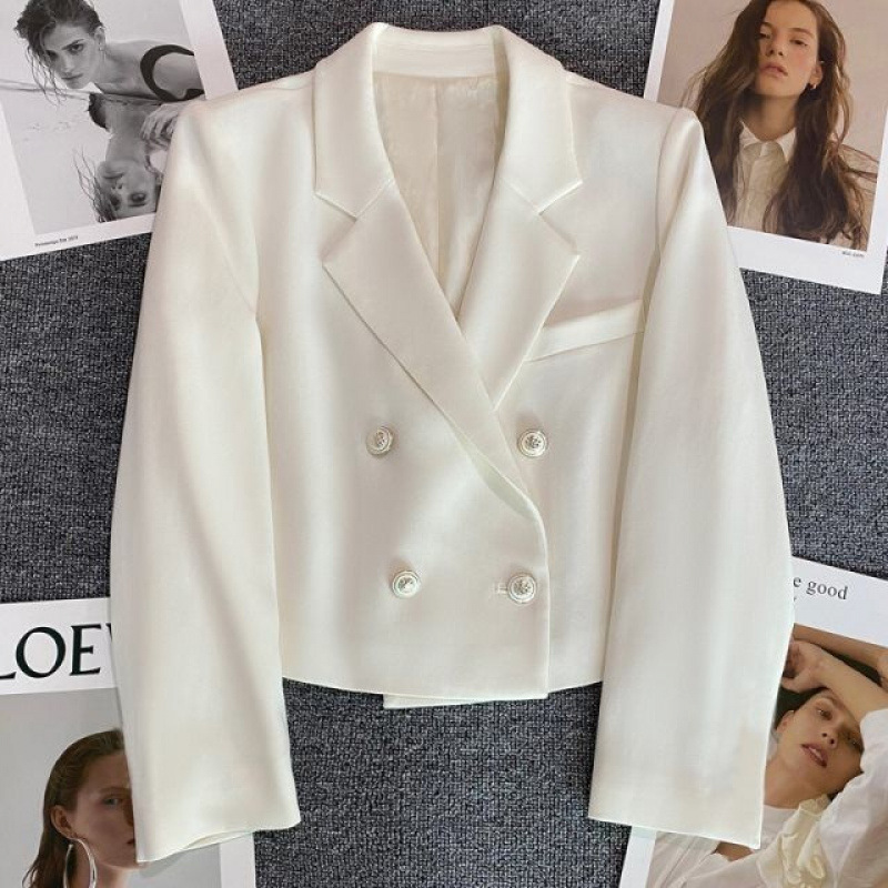 더블 브레스트 봄과 가을 짧은 긴팔 여성용 화이트 세트 슬림 핏 우아한 세트 재킷스토어 가기