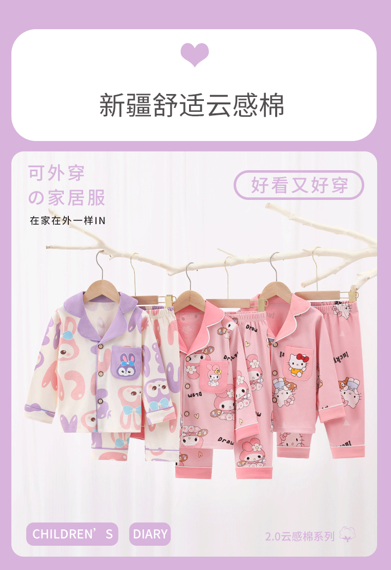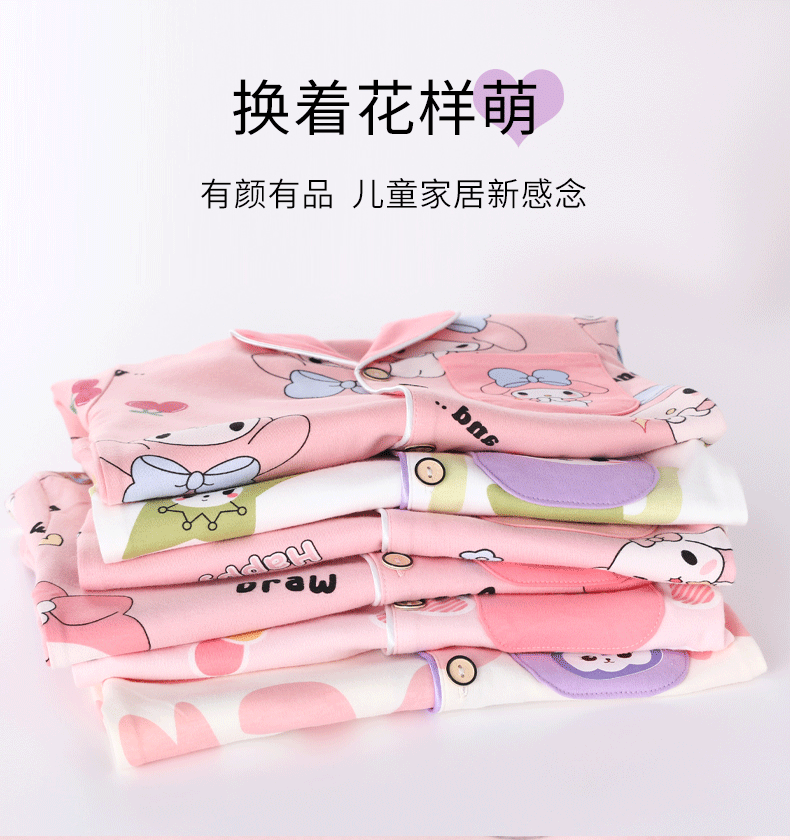 소녀 잠옷 긴 소매 카디건 홈 의류 만화 느슨한 중 큰 어린이 세트 어린이 봄과 가을 소녀 귀여운 순면스토어 가기