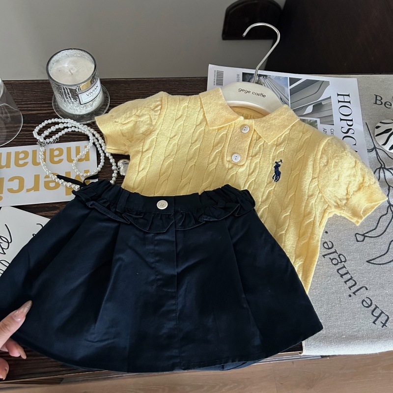 한국 아동복 2025 새로운 여름 소녀 폴로 셔츠 꼬인 짧은 소매 어린이 스커트 투피스 트렌디