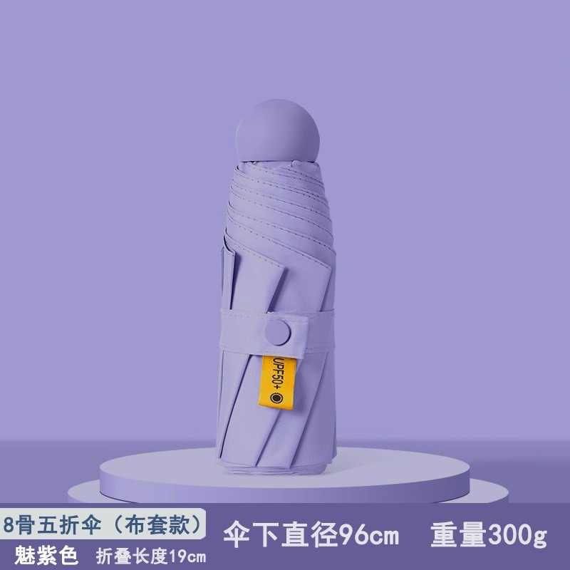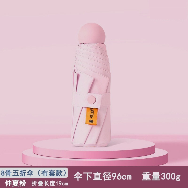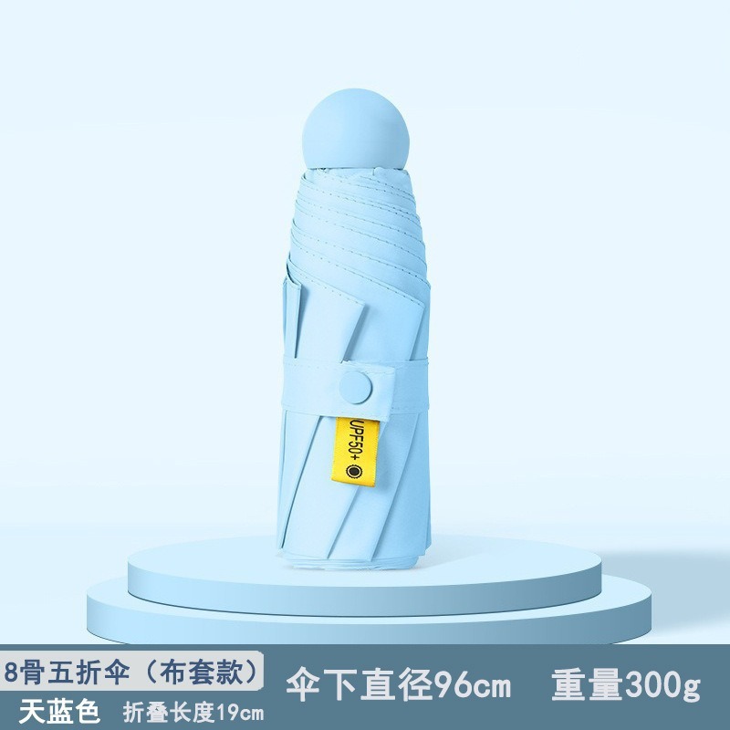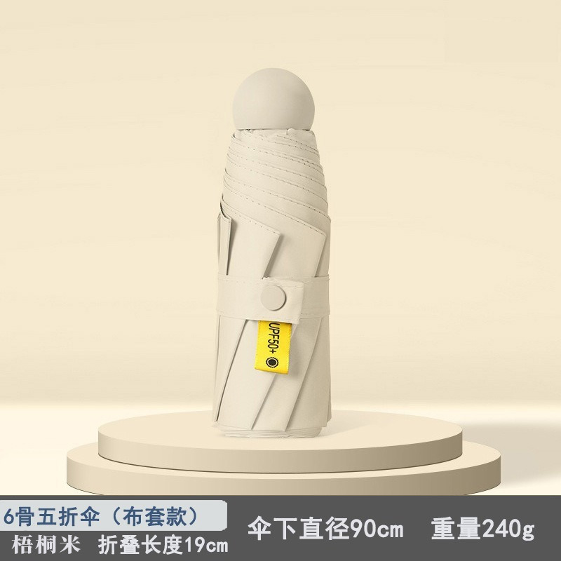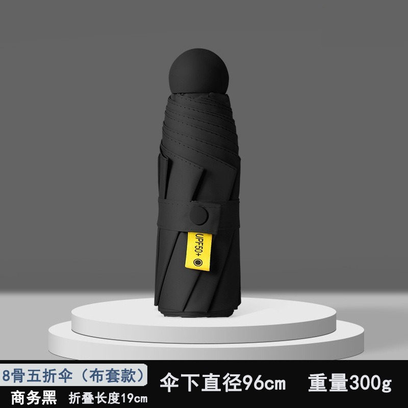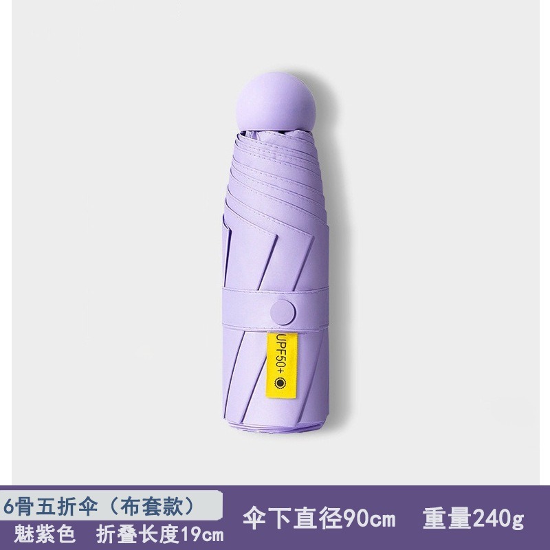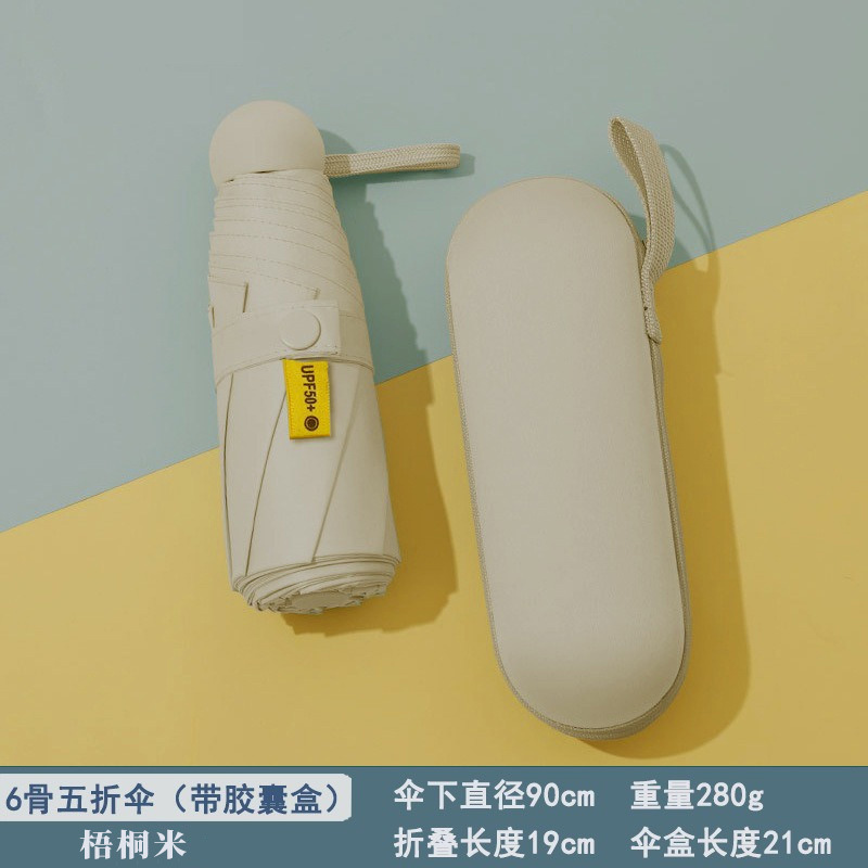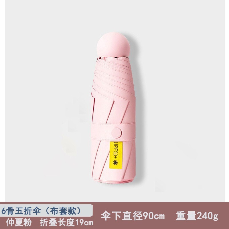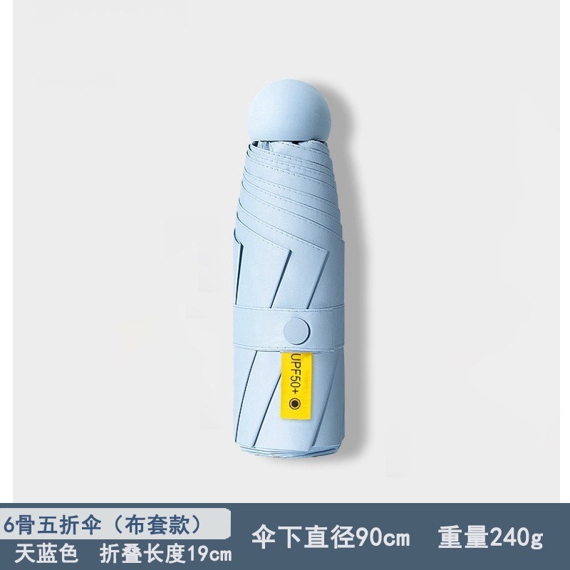 울트라 라이트 50% 접이식 캡슐 우산 작은 휴대용 선 스크린 우산 검은 접착제 50 햇빛 우산 여성 고급 감지 UV 보호스토어 가기