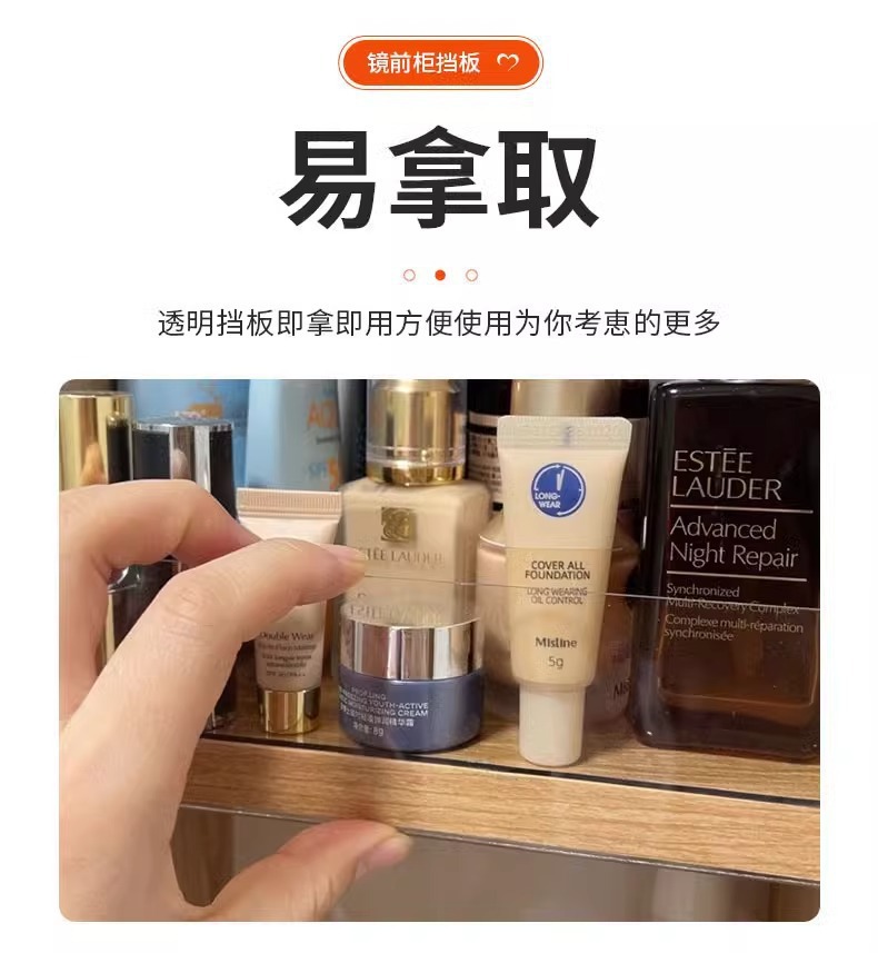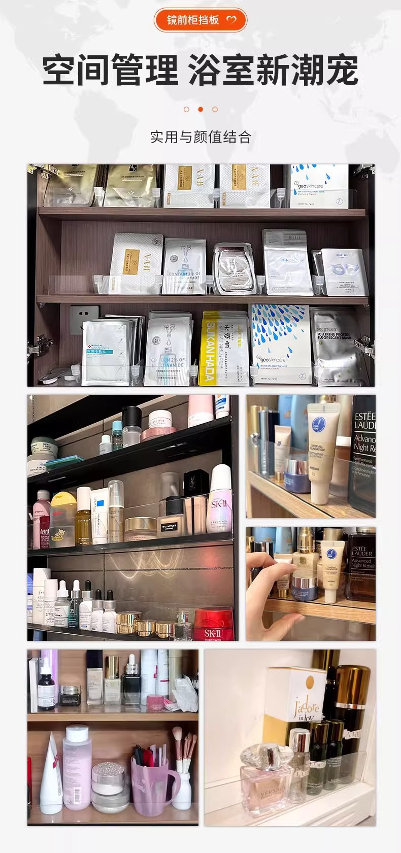 투명 아크릴 거울 캐비닛 베젤 낙하 방지 욕실 칸막이 선반 주방 수납 디스플레이 랙