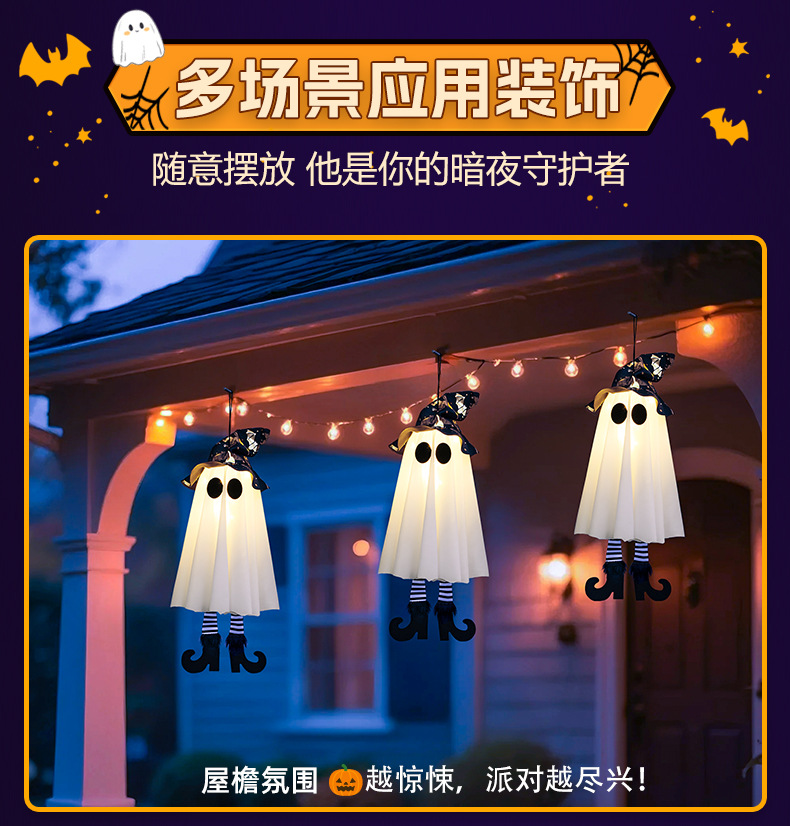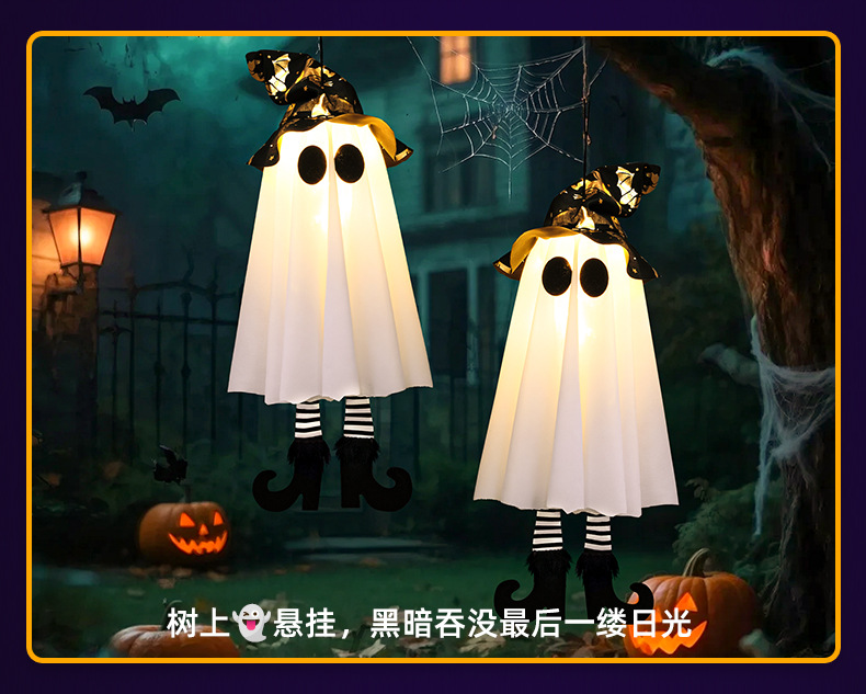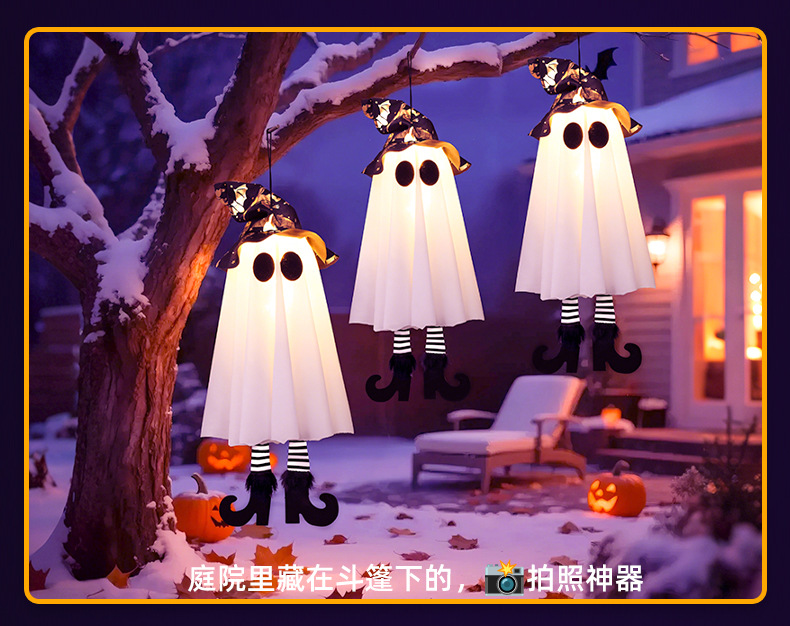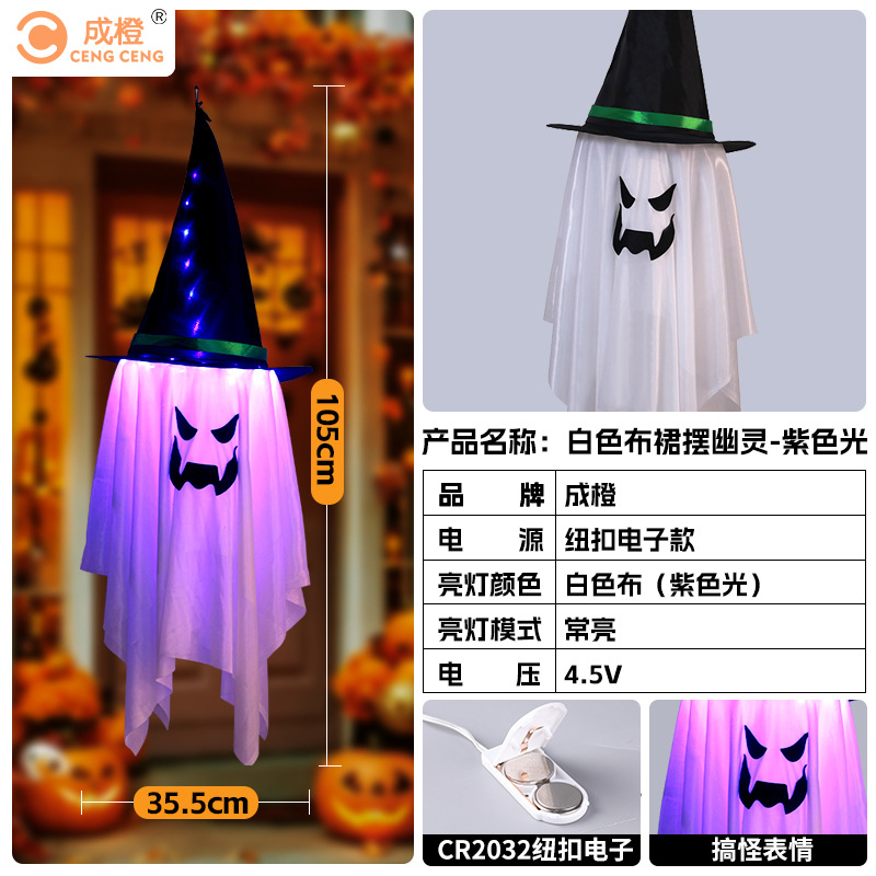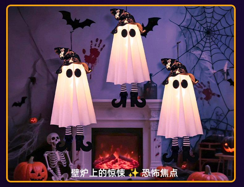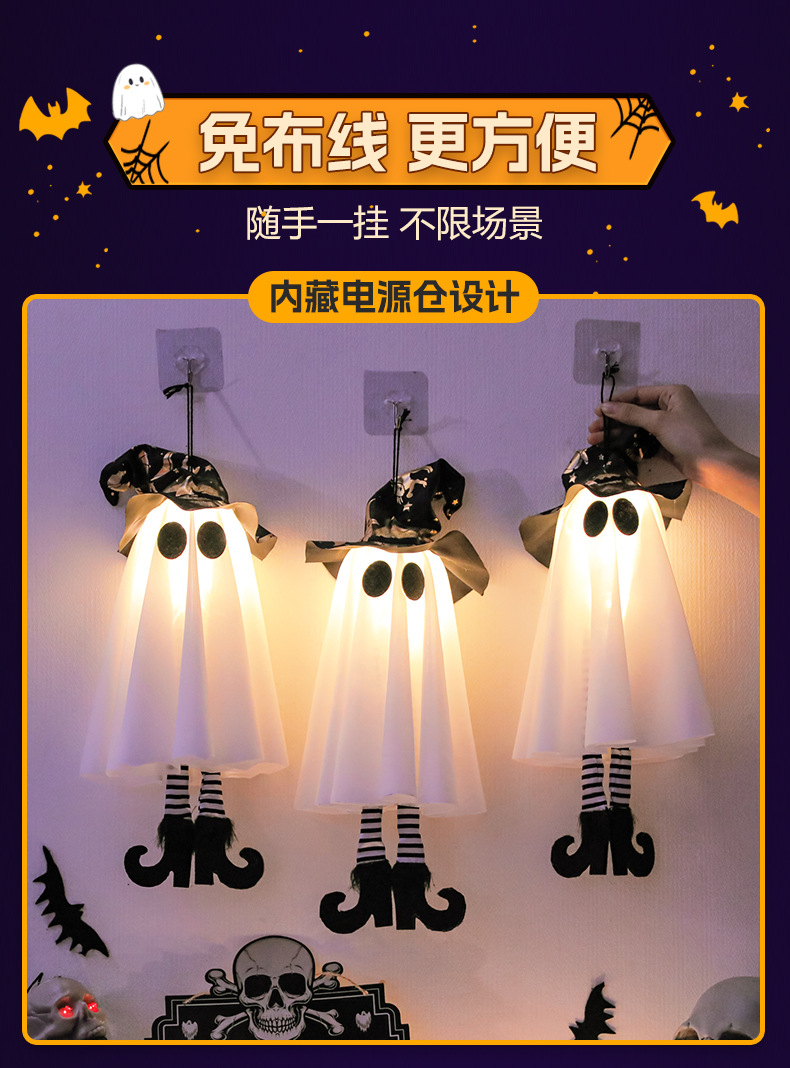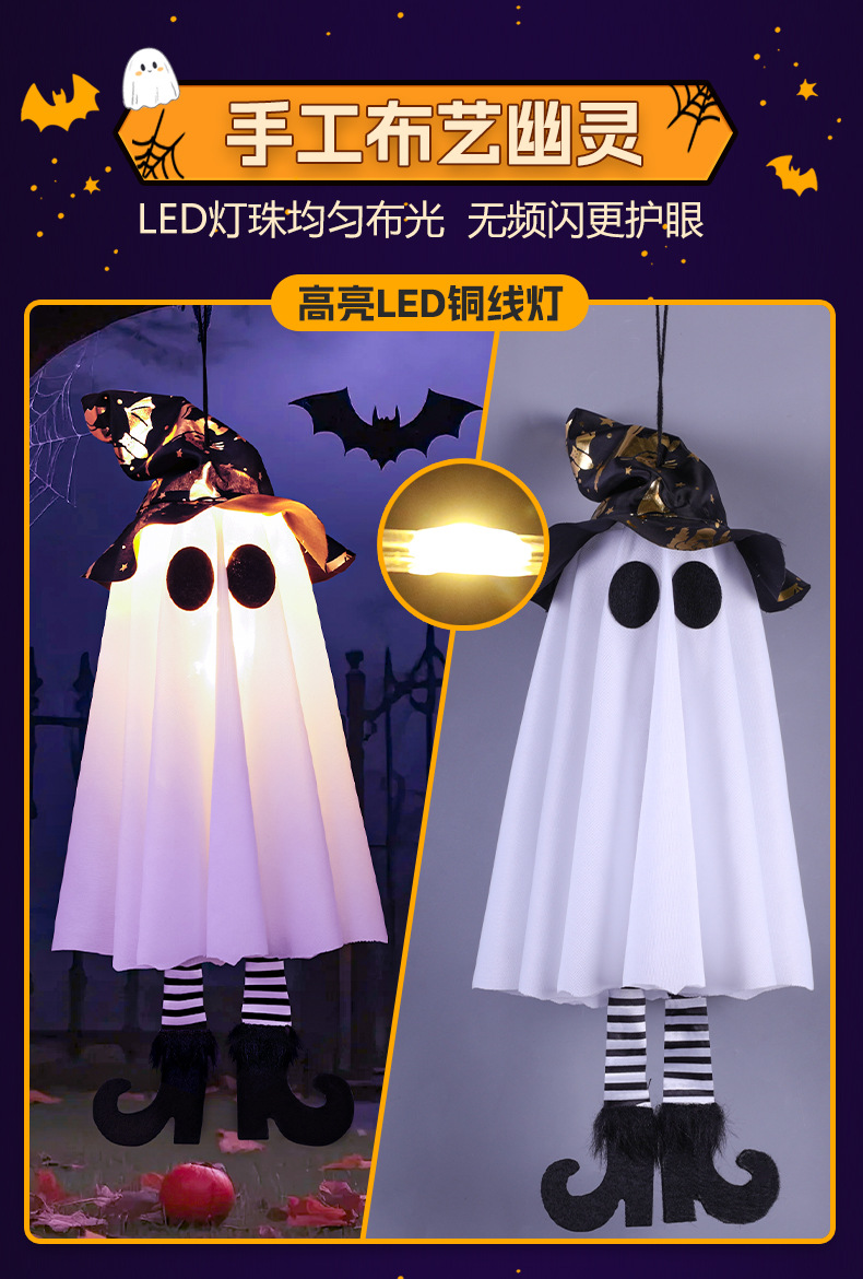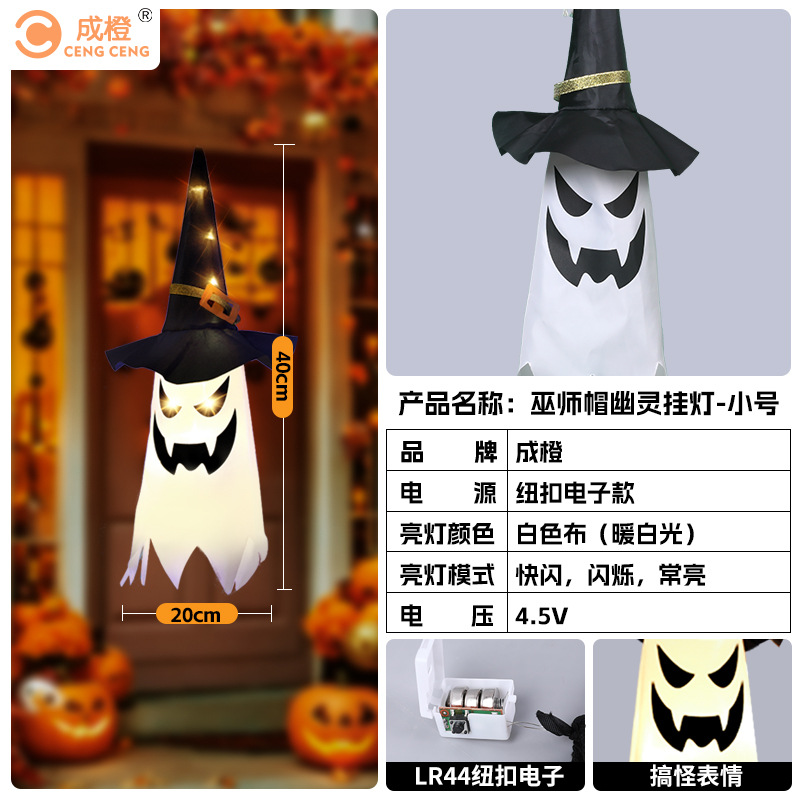 새로운 할로윈 장식 LED 조명 유령 모양 마법사 빛나는 펜던트 크로스 국경 공포 분위기 레이아웃스토어 가기