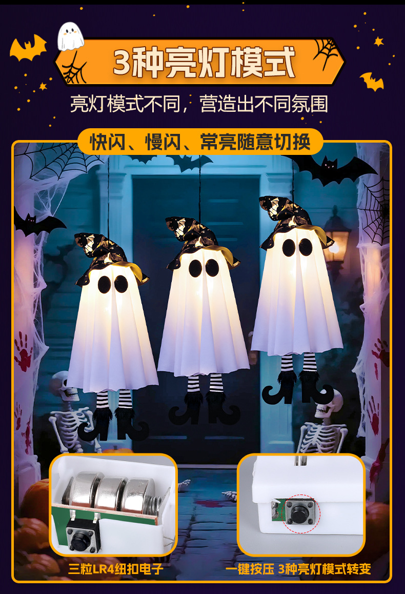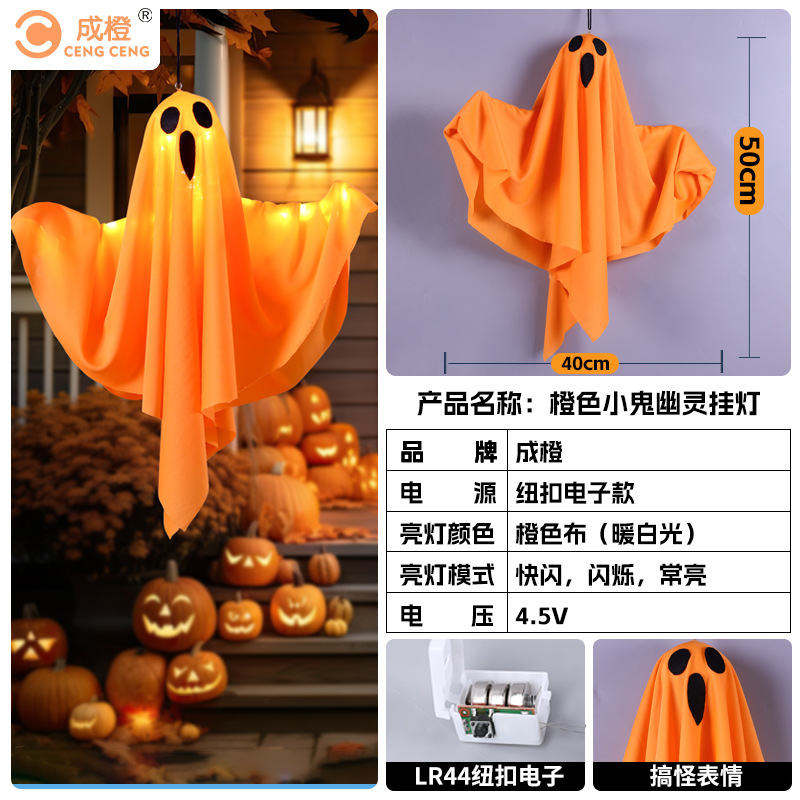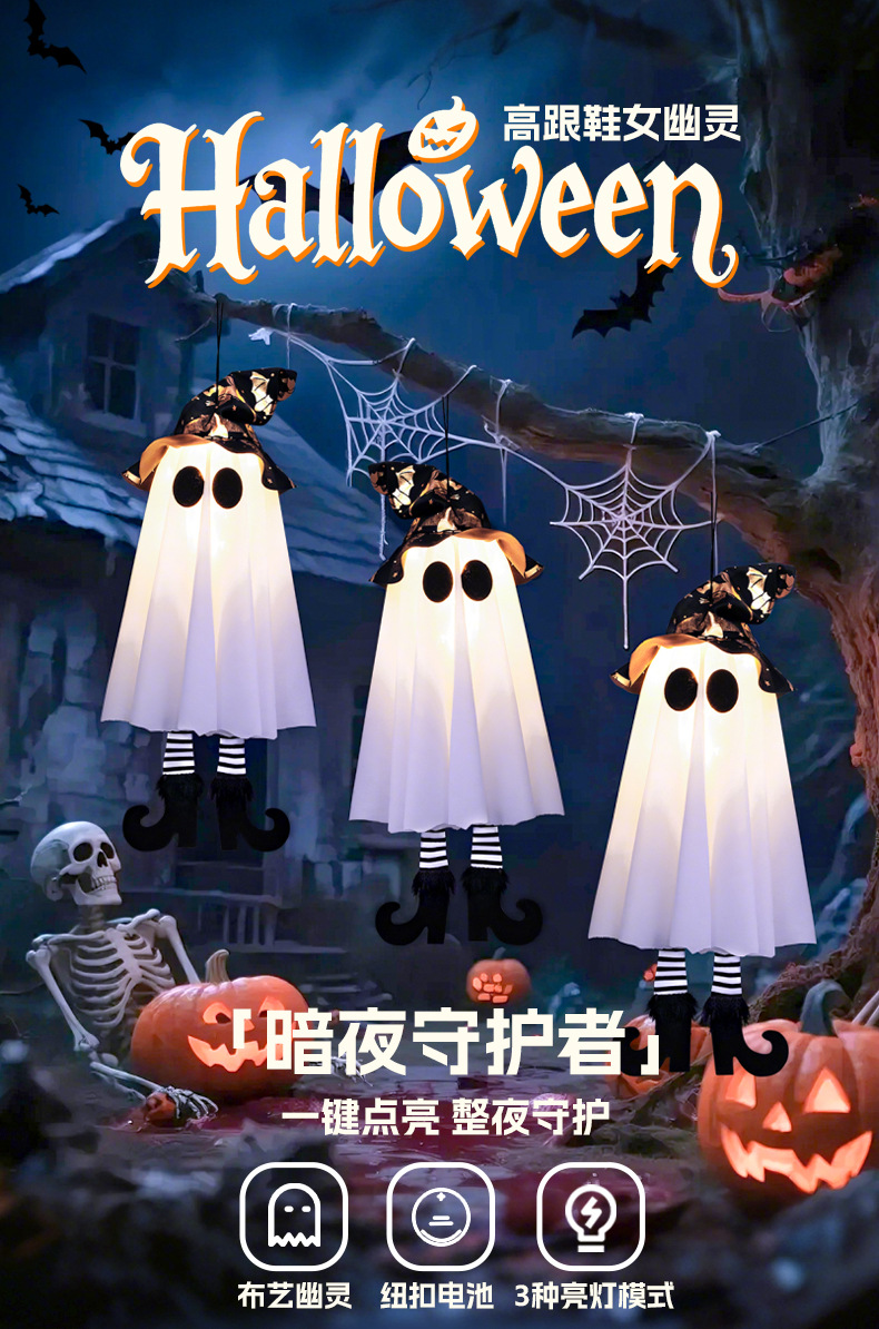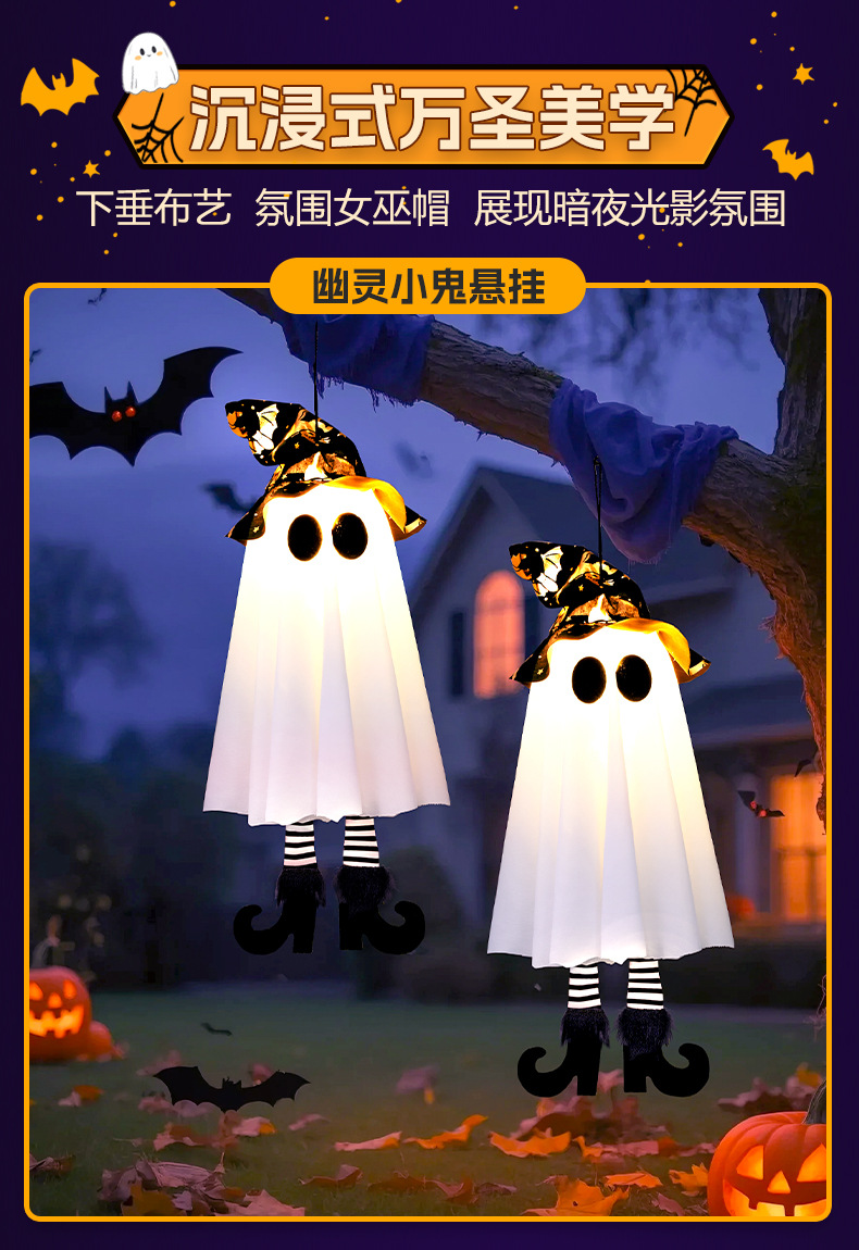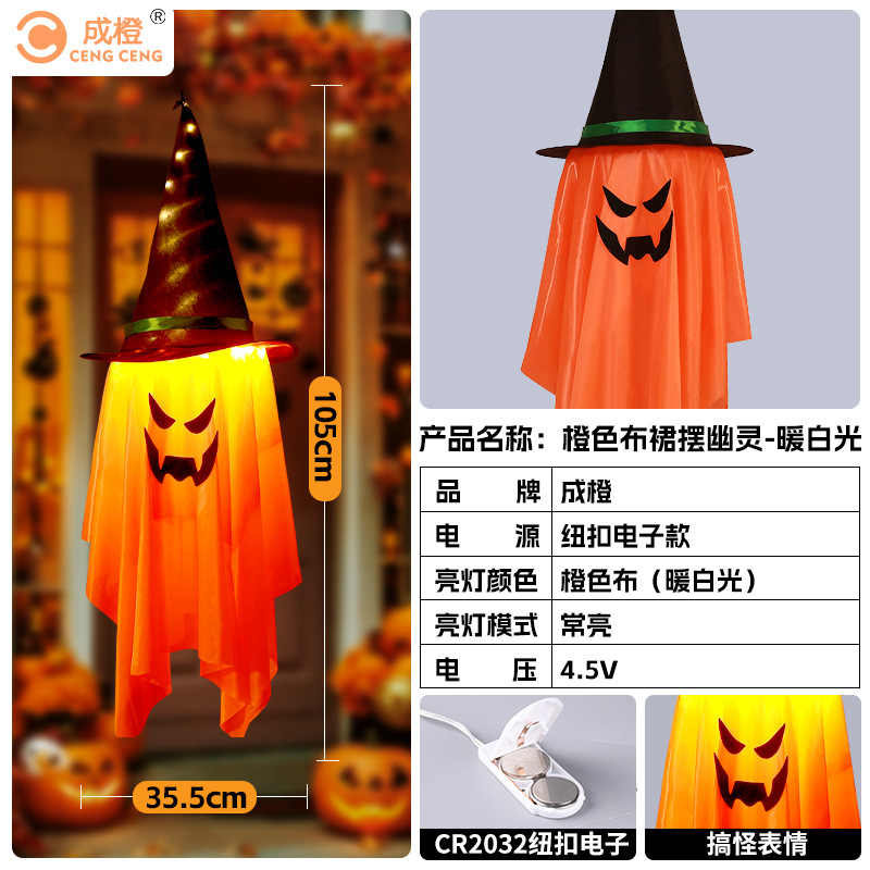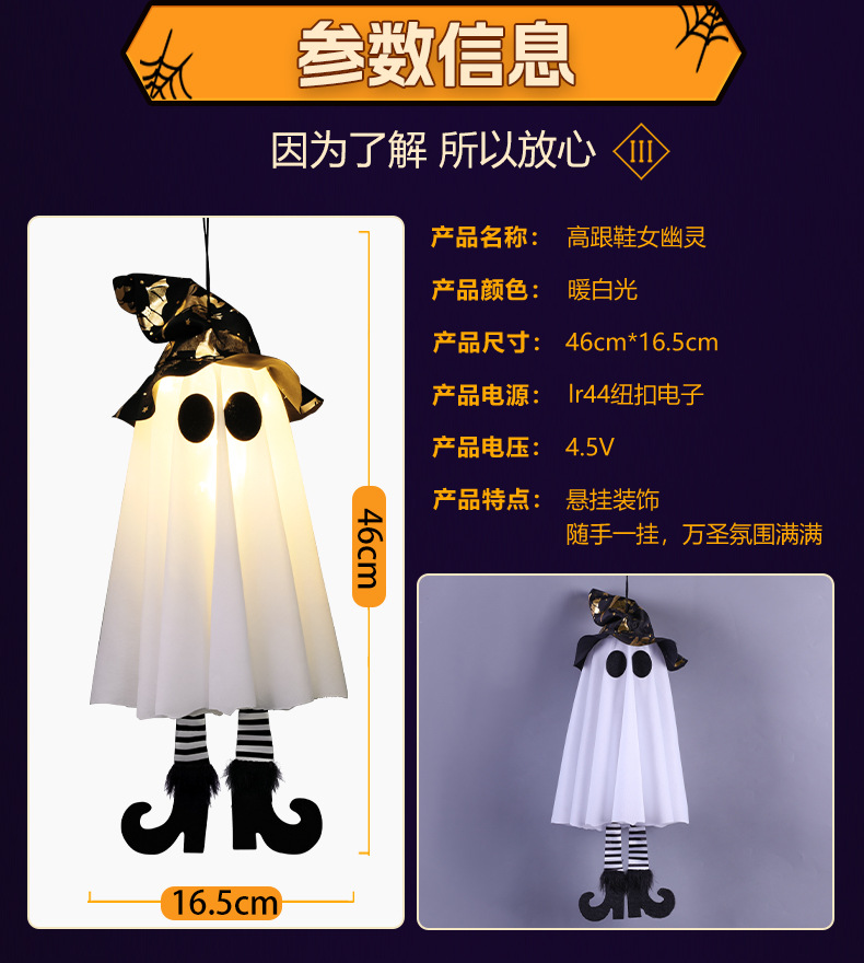 새로운 할로윈 장식 LED 조명 유령 모양 마법사 빛나는 펜던트 크로스 국경 공포 분위기 레이아웃스토어 가기