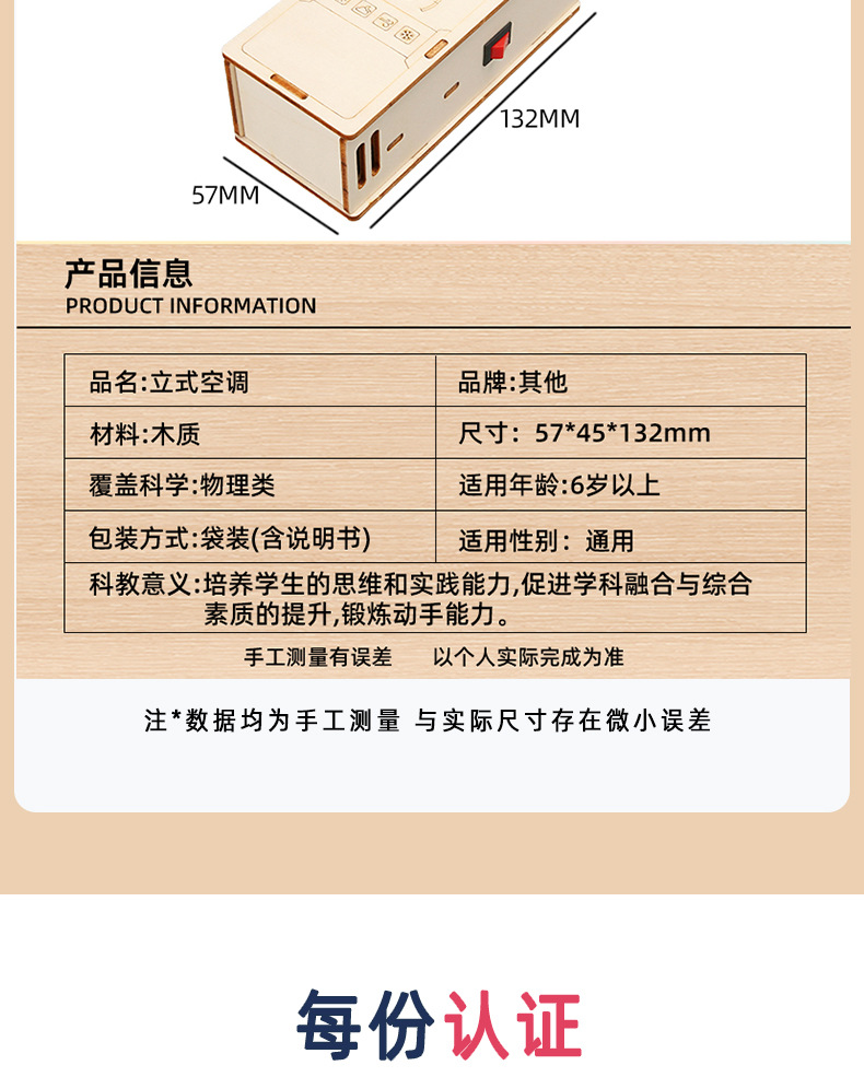 과학 기술 소규모 생산 DIY 수직 에어컨 모델 과학 및 교육 교육 보조 학생 조립 과학 실험 장난감 재료 패키지