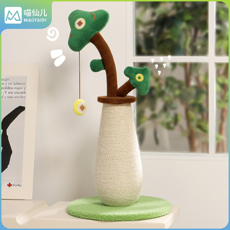 Meow Fairy 고양이 스크래치 보드 행운의 나무 사이잘 고양이 스크래치 컬럼 고양이 클라이밍 프레임 일체형 내마모성 및 비떨어지는 수직 고양이 장난감스토어 가기