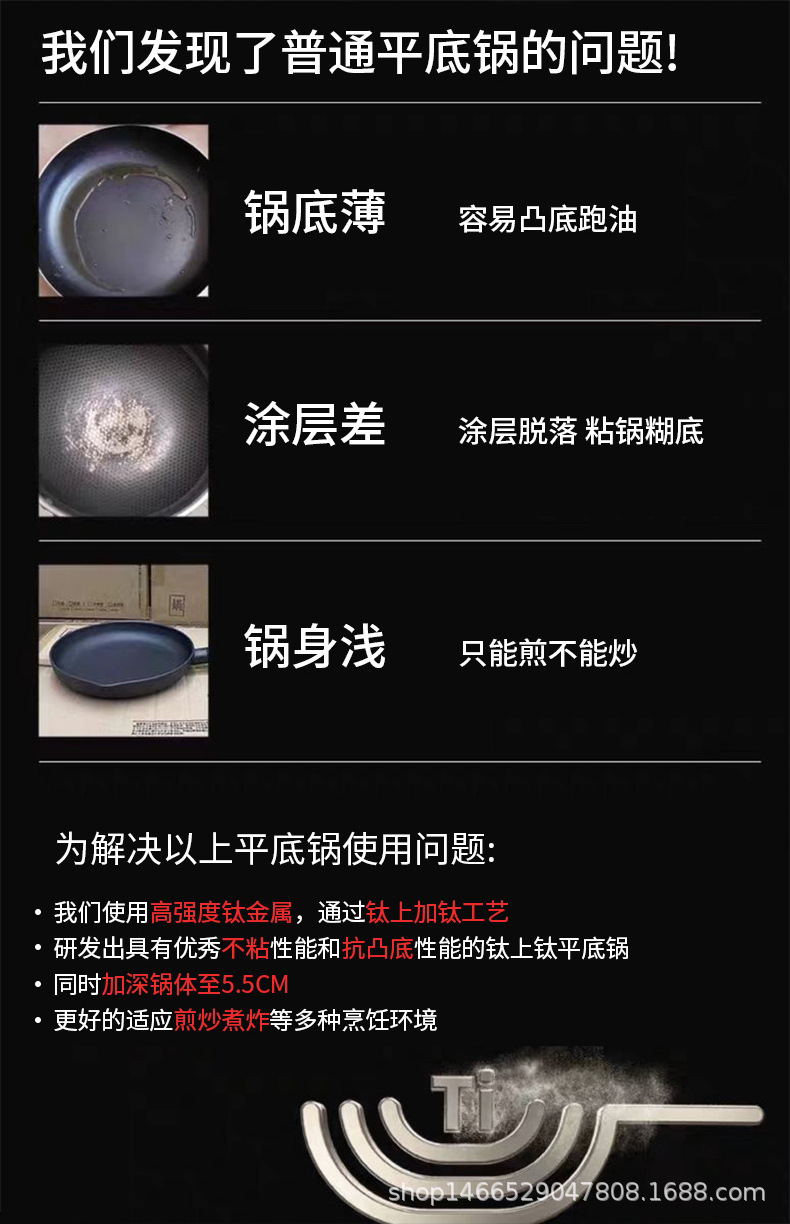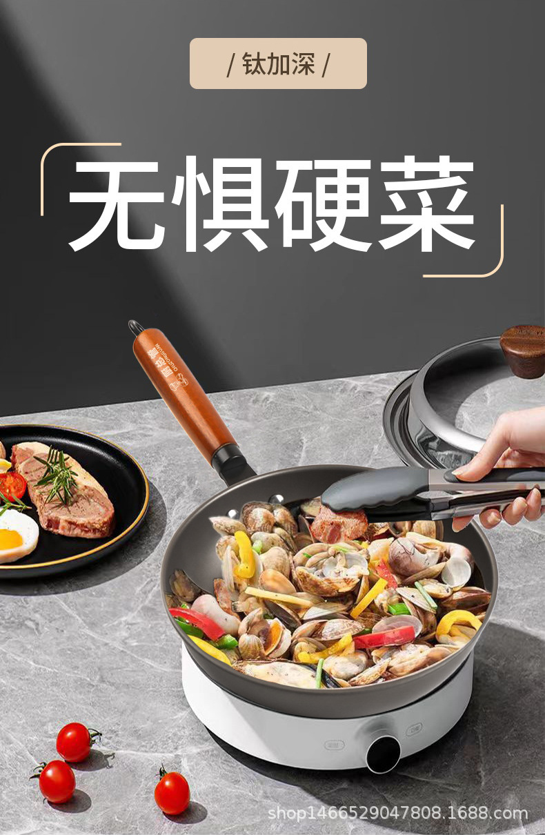 티타늄 코팅 팬 비 스틱 팬 가구 튀김 스테이크 및 계란 튀김 팬 유도 쿠커 가스 스토브 일반 공장 도매