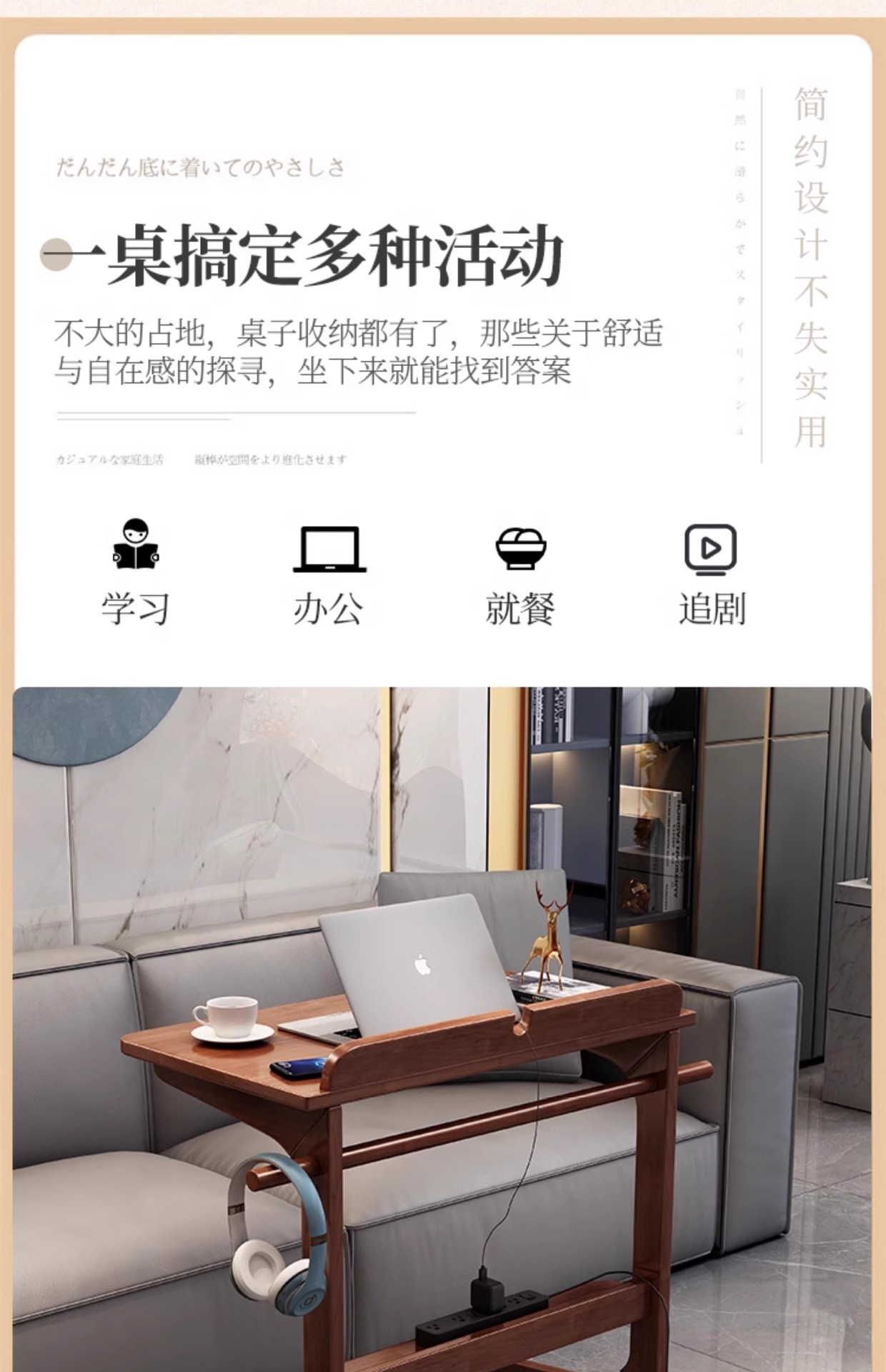 단단한 나무 책상 이동식 책상 홈 소파 사이드 테이블 작은 아파트 침실 머리맡 테이블 노트북 테이블스토어 가기