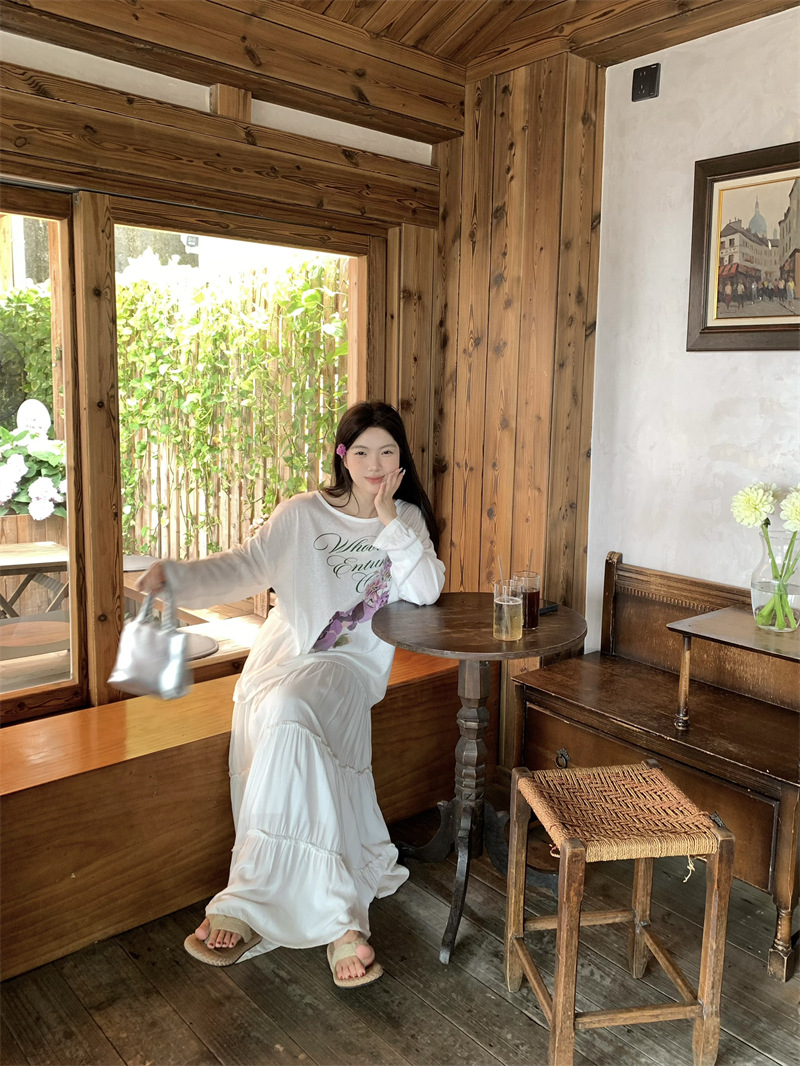 리얼 샷 ~ 2025 여름 새로운 한국 게으른 부드러운 꽃 프린트 블라우스 꽃 선 스크린 긴 소매 얇은 티셔츠스토어 가기