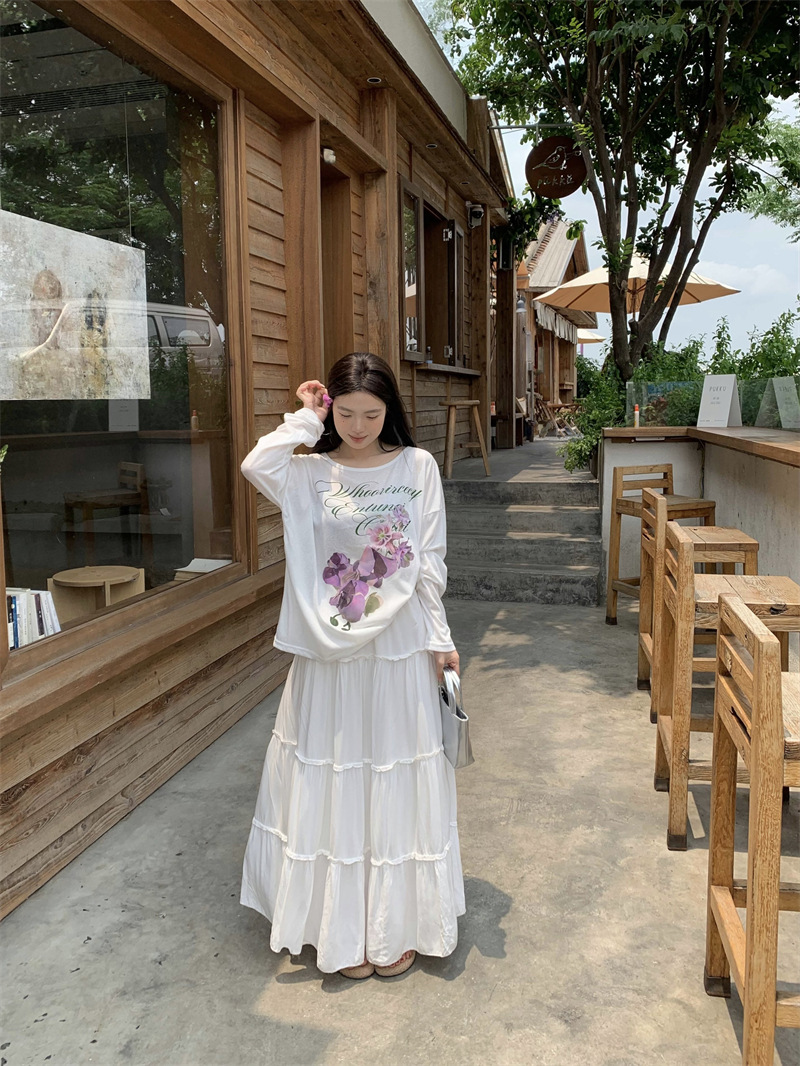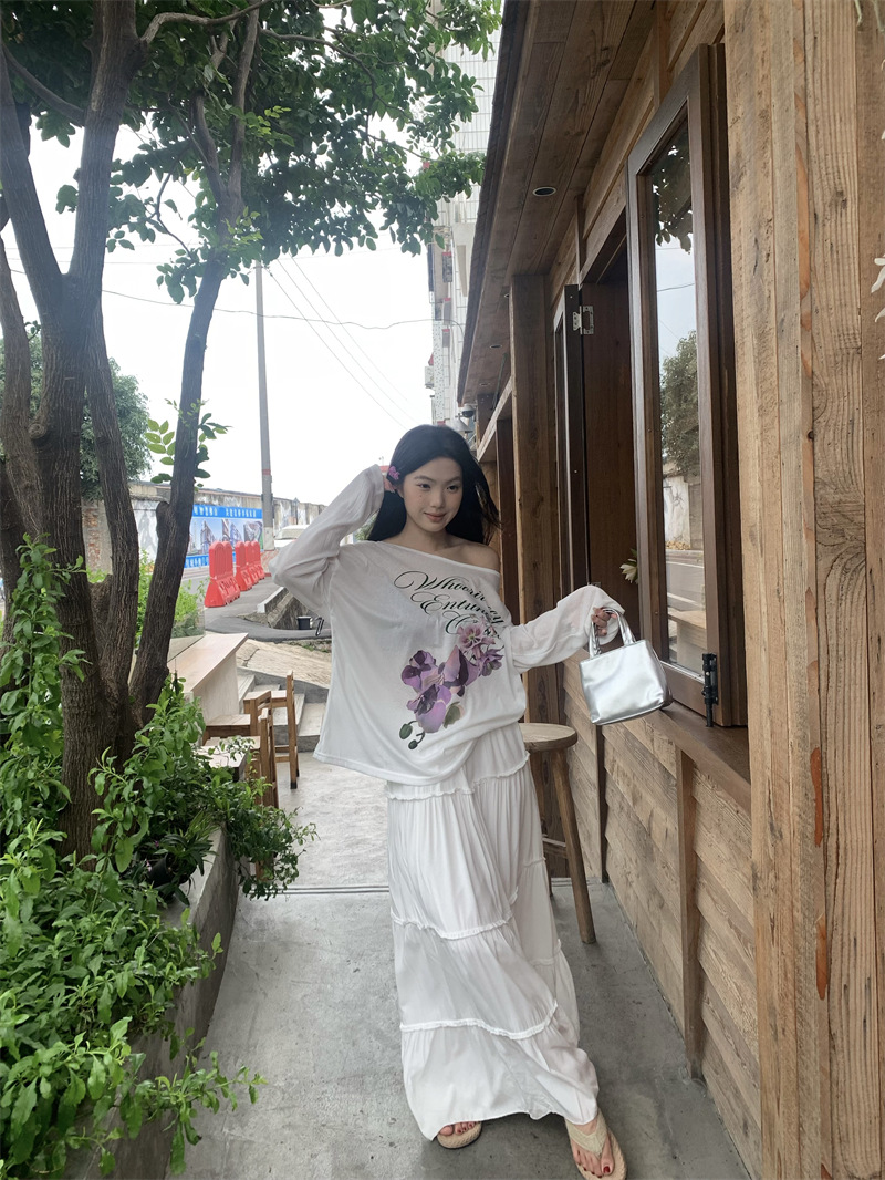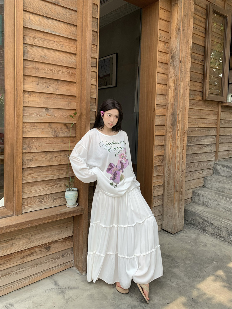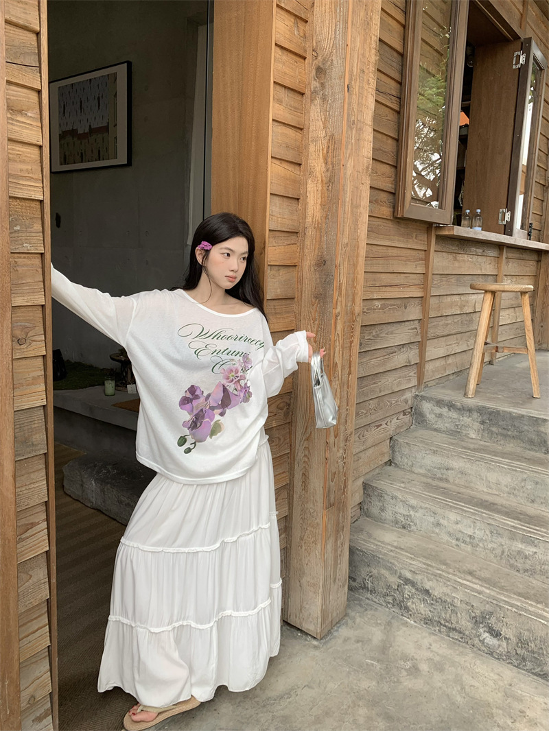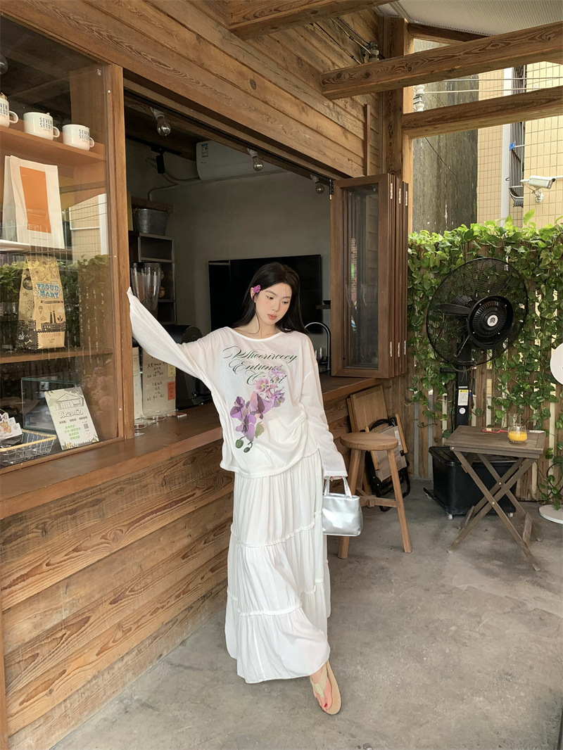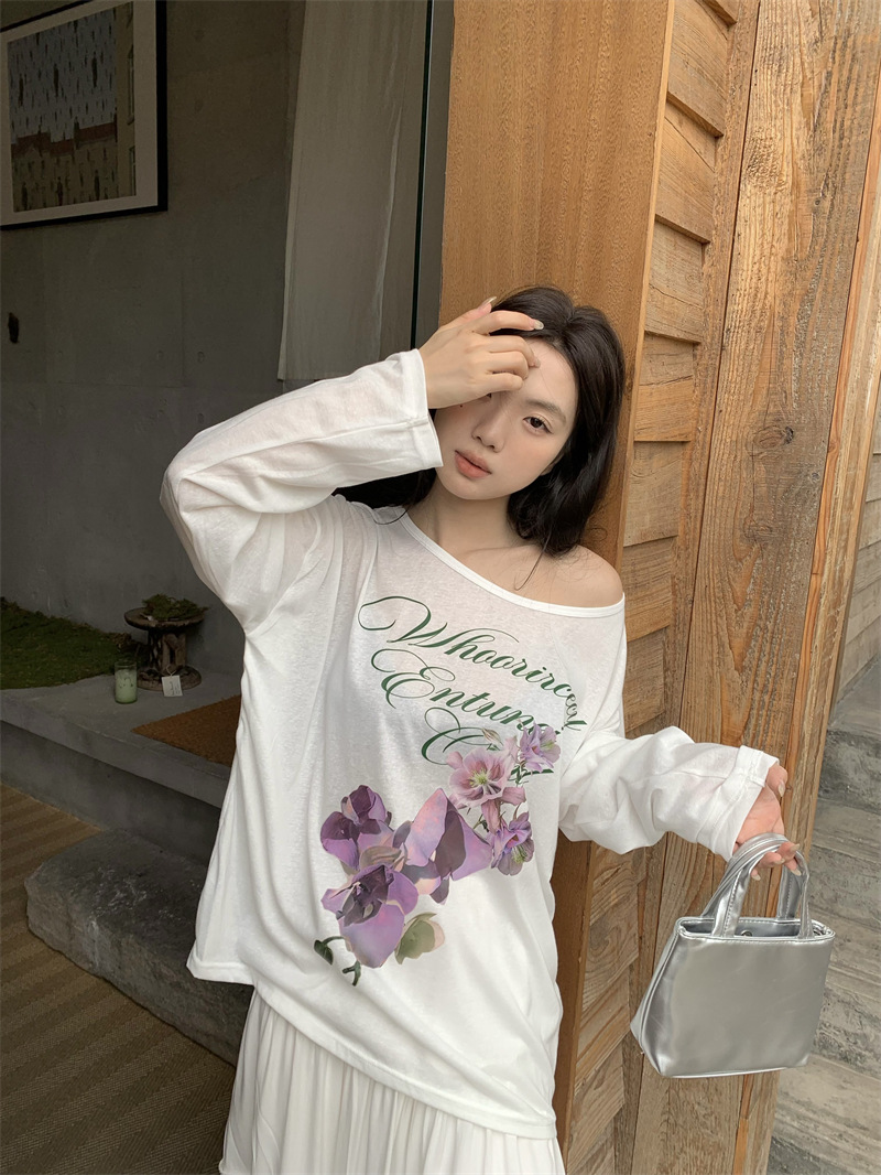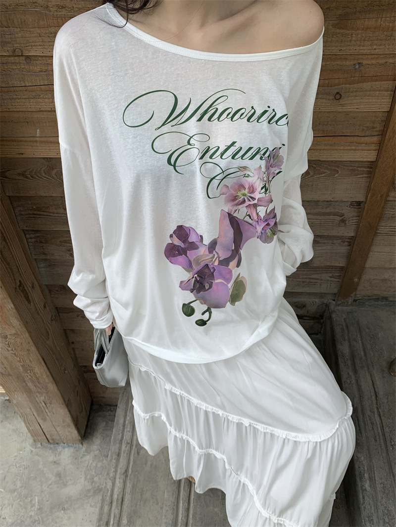 리얼 샷 ~ 2025 여름 새로운 한국 게으른 부드러운 꽃 프린트 블라우스 꽃 선 스크린 긴 소매 얇은 티셔츠