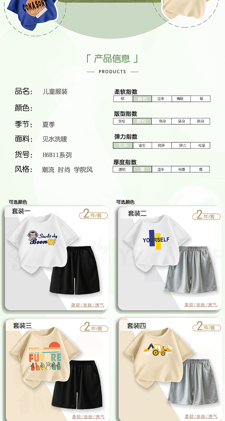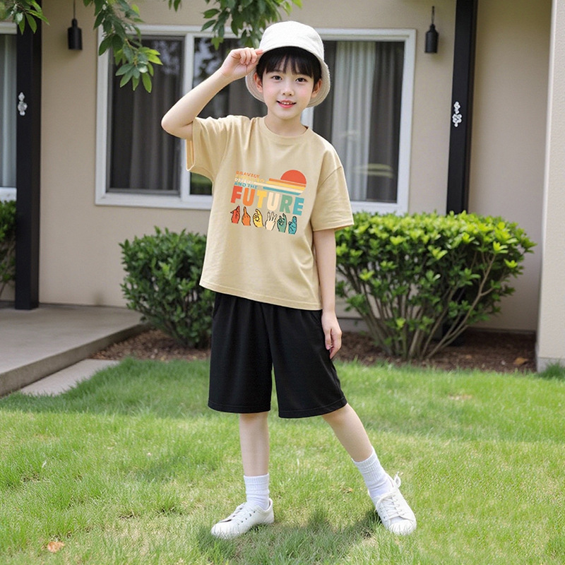 중대형 남아 캐주얼 슈트 2025 인터넷 연예인 스트리트 반팔 티셔츠 탑 캐주얼 반바지 아동 투피스 세트스토어 가기