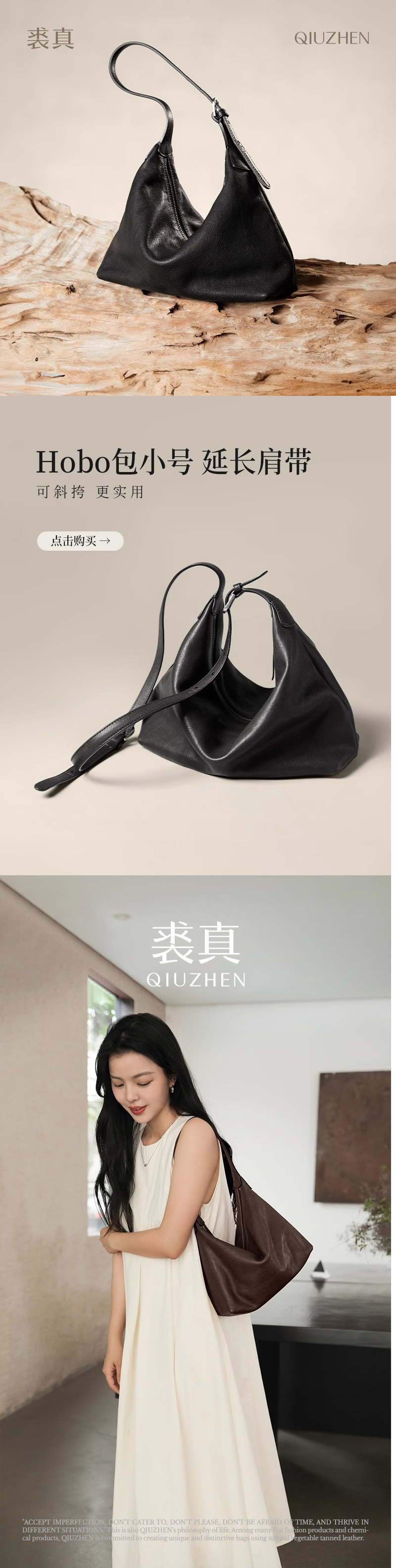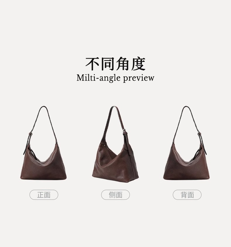 裘真头层植鞣牛皮腋下经典hobo包百搭休闲单肩通勤包真皮饺子包女