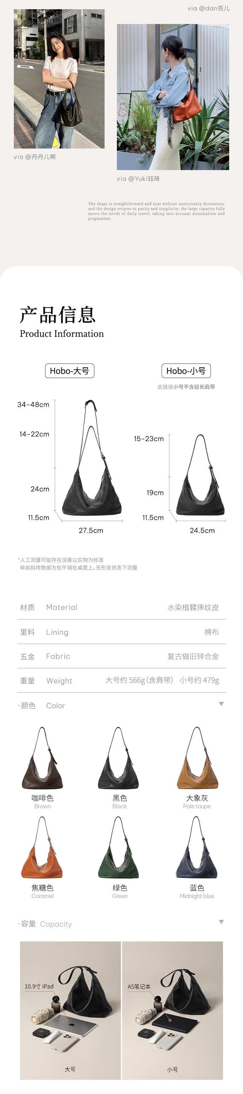裘真头层植鞣牛皮腋下经典hobo包百搭休闲单肩通勤包真皮饺子包女스토어 가기