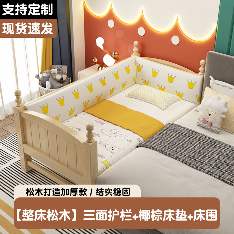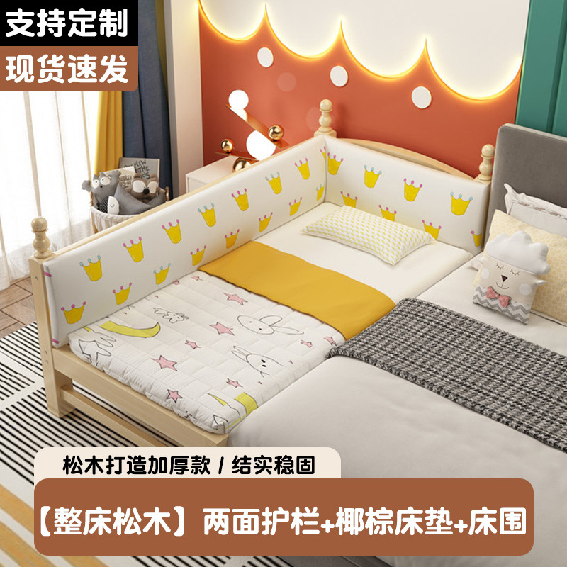원목 베이비 접합 침대, 가드레일이 있는 넓은 어린이 침대, 두꺼운 아기 침대, 공주 침대 옆 대형 침대, 사용 가능스토어 가기