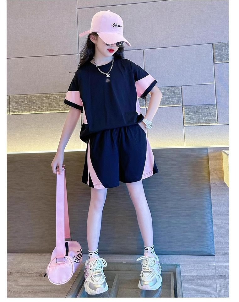 여자 속건 스포츠 정장 여름 2025 새로운 스타일 외국 스타일 큰 어린이 학생 반팔 반바지 여름 투피스 세트