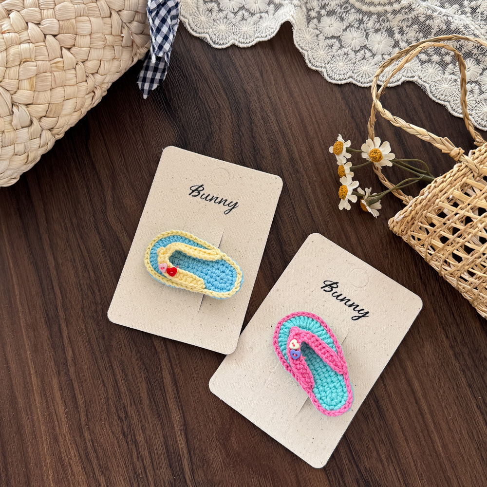 새로운 웃긴 소녀의 플립 플롭 헤어핀 손으로 짠 헤어 액세서리 깨진 헤어 뱅 사이드 클립 깨진 헤어 카드