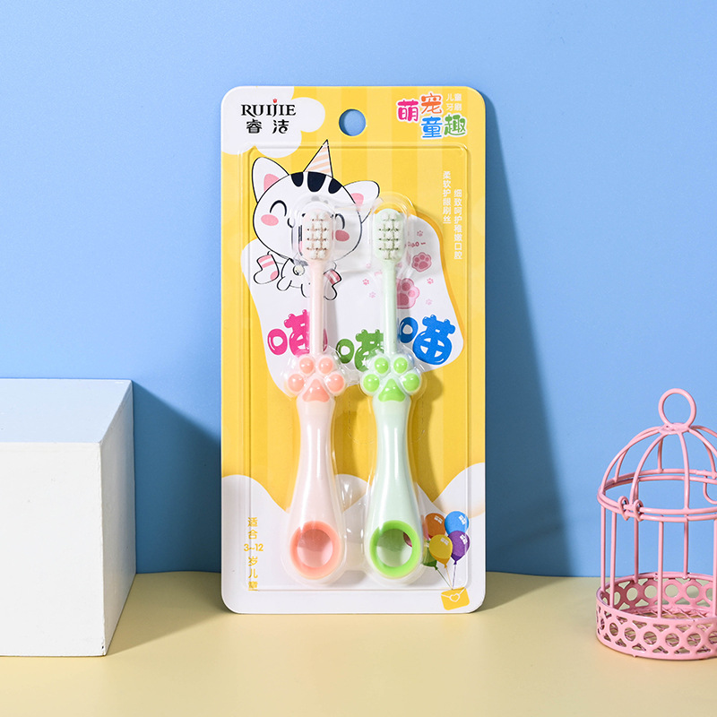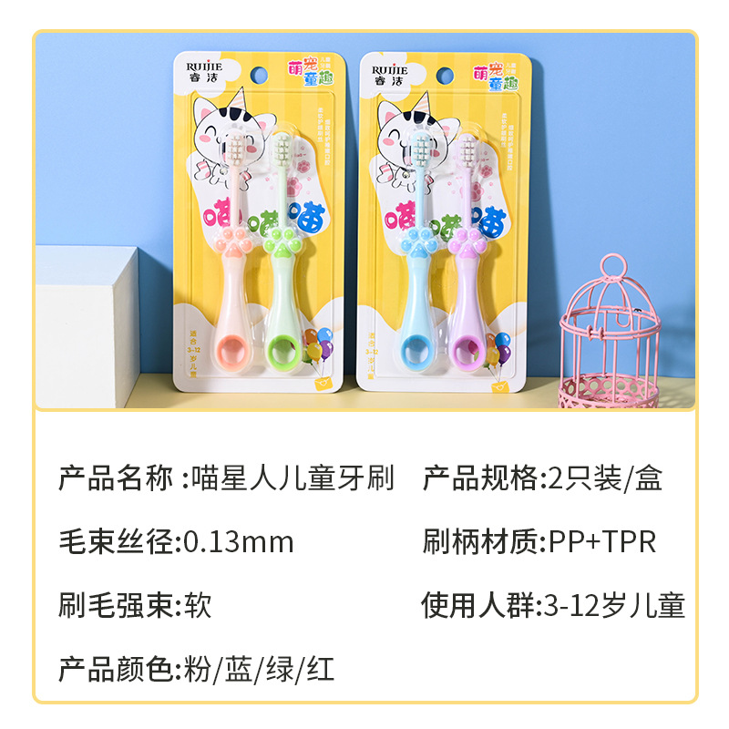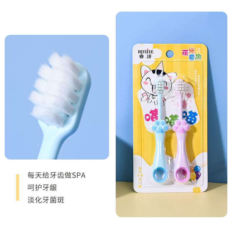 Ruijie Meow Claw 고양이 발톱 어린이 부드러운 칫솔 아기 만화 Douyin 일일 백화점 도매 귀여운 우유 치아