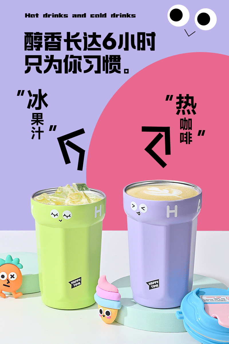 보온 컵 316 업그레이드 만화 팔각형 커피 컵은 자동차에 장착할 수 있습니다. 휴대용 야외 텀블러 316 스테인레스 스틸 워터 컵스토어 가기