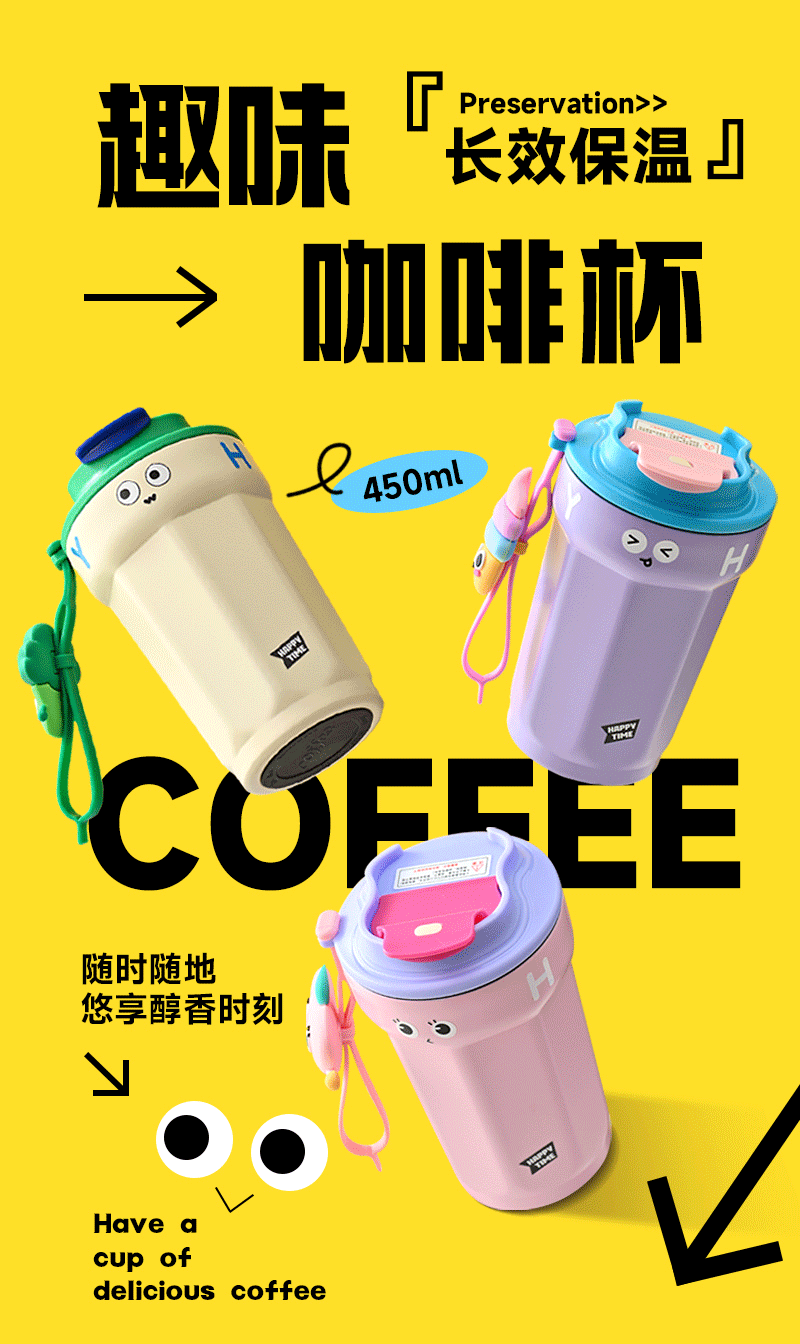 보온 컵 316 업그레이드 만화 팔각형 커피 컵은 자동차에 장착할 수 있습니다. 휴대용 야외 텀블러 316 스테인레스 스틸 워터 컵