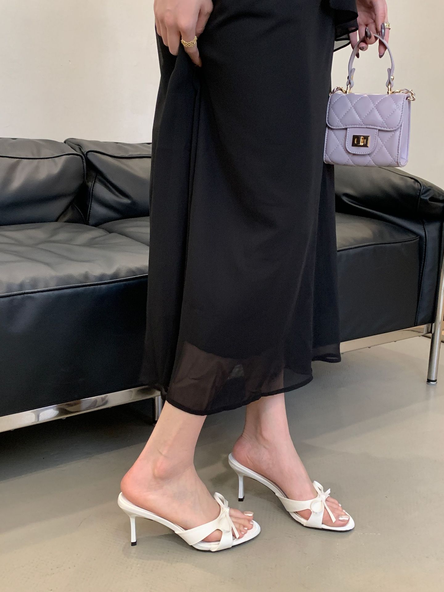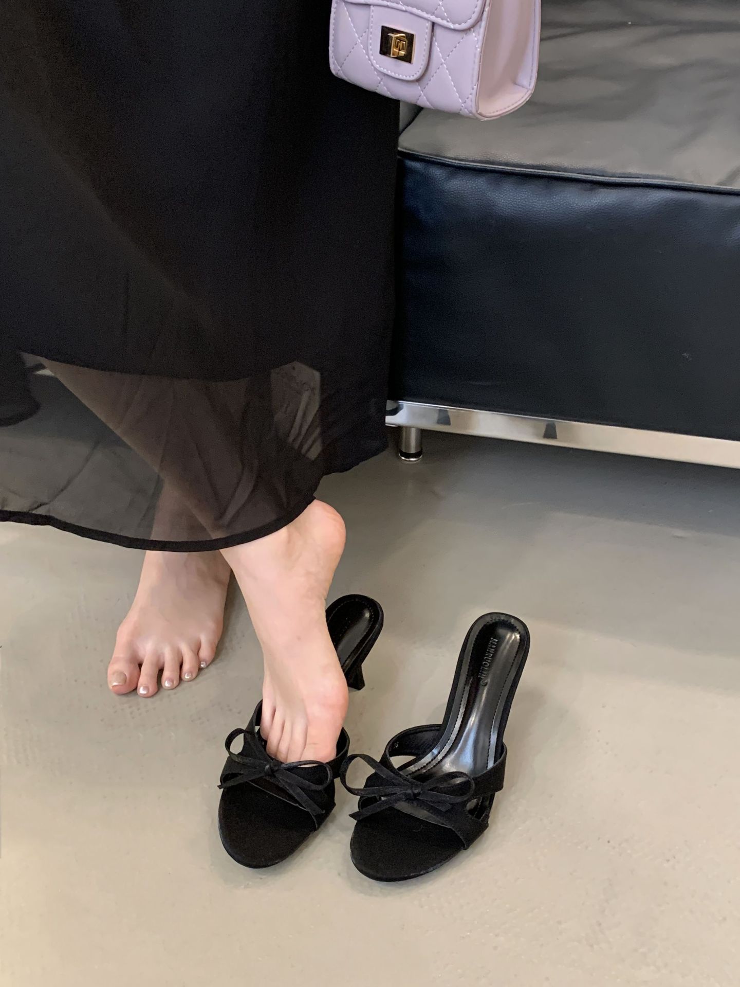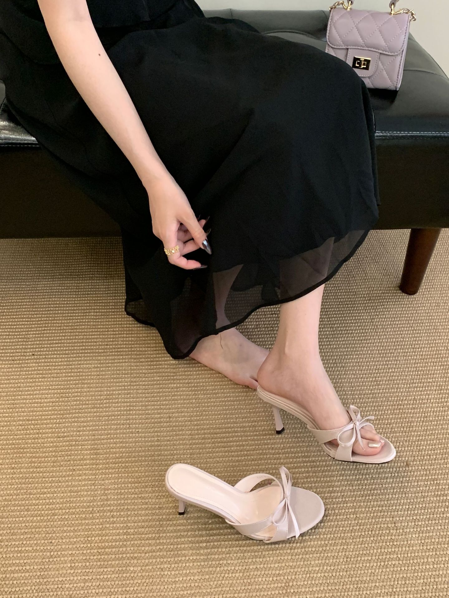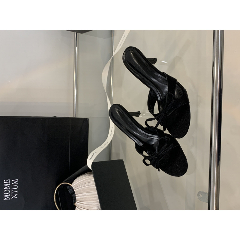 2025 봄과 가을 새로운 패션 다목적 기질 새틴 크로스 스트랩 스틸레토 샌들 여성용 외부 착용 Bowknot스토어 가기
