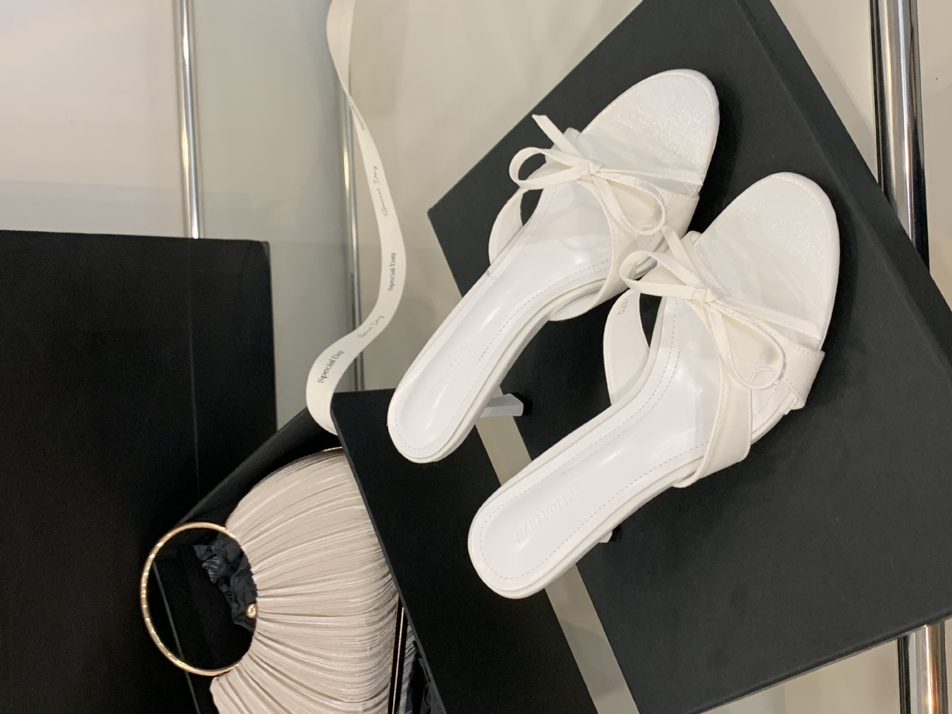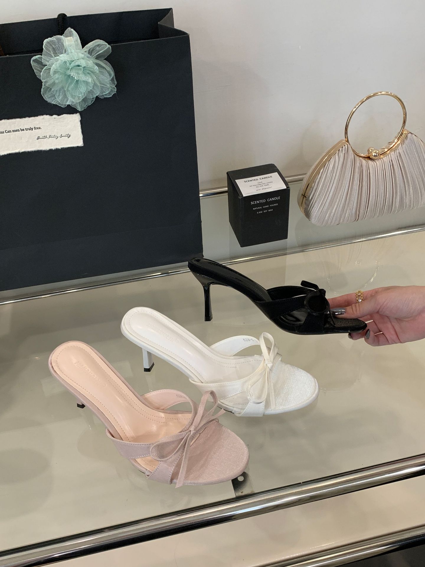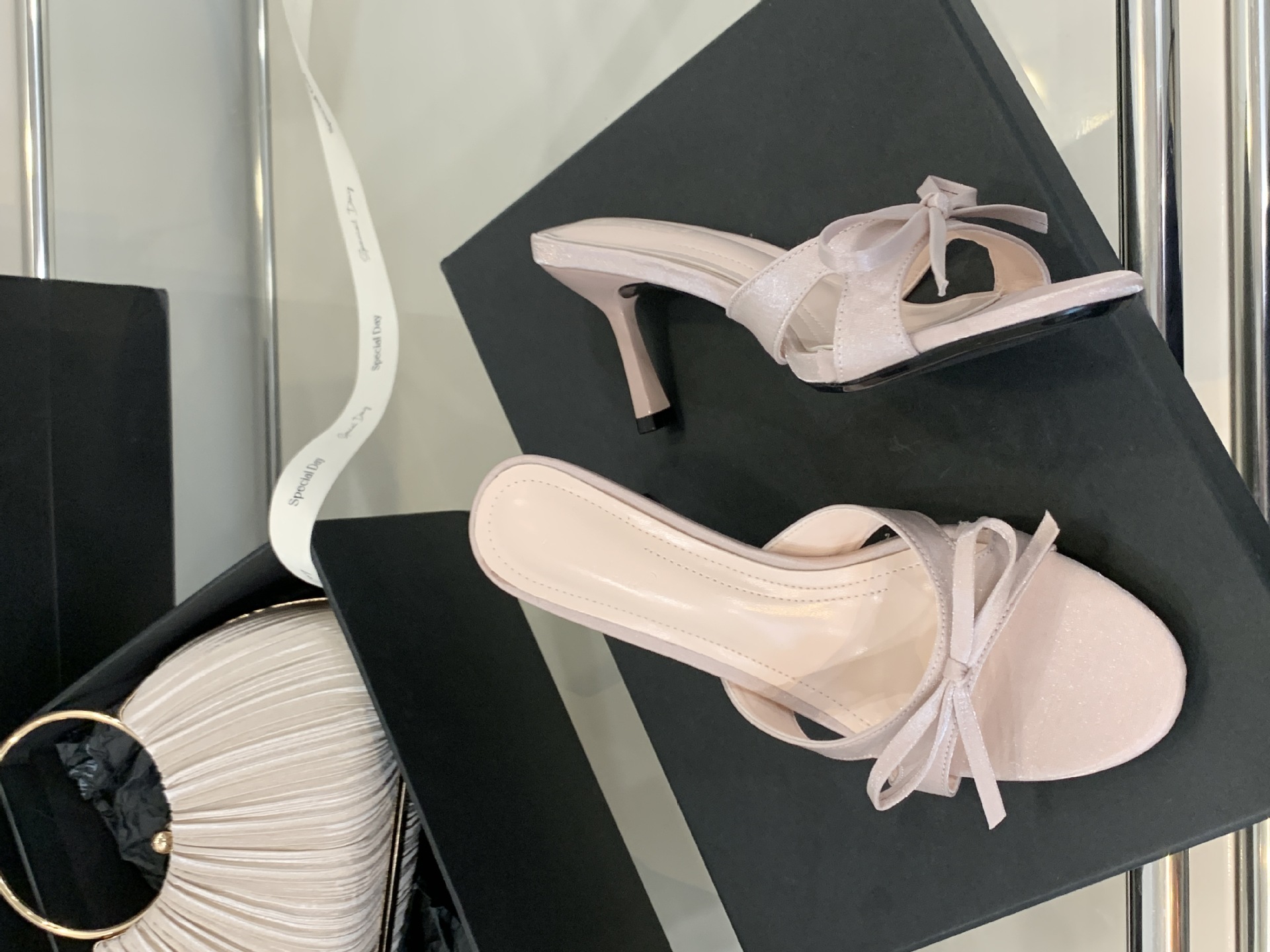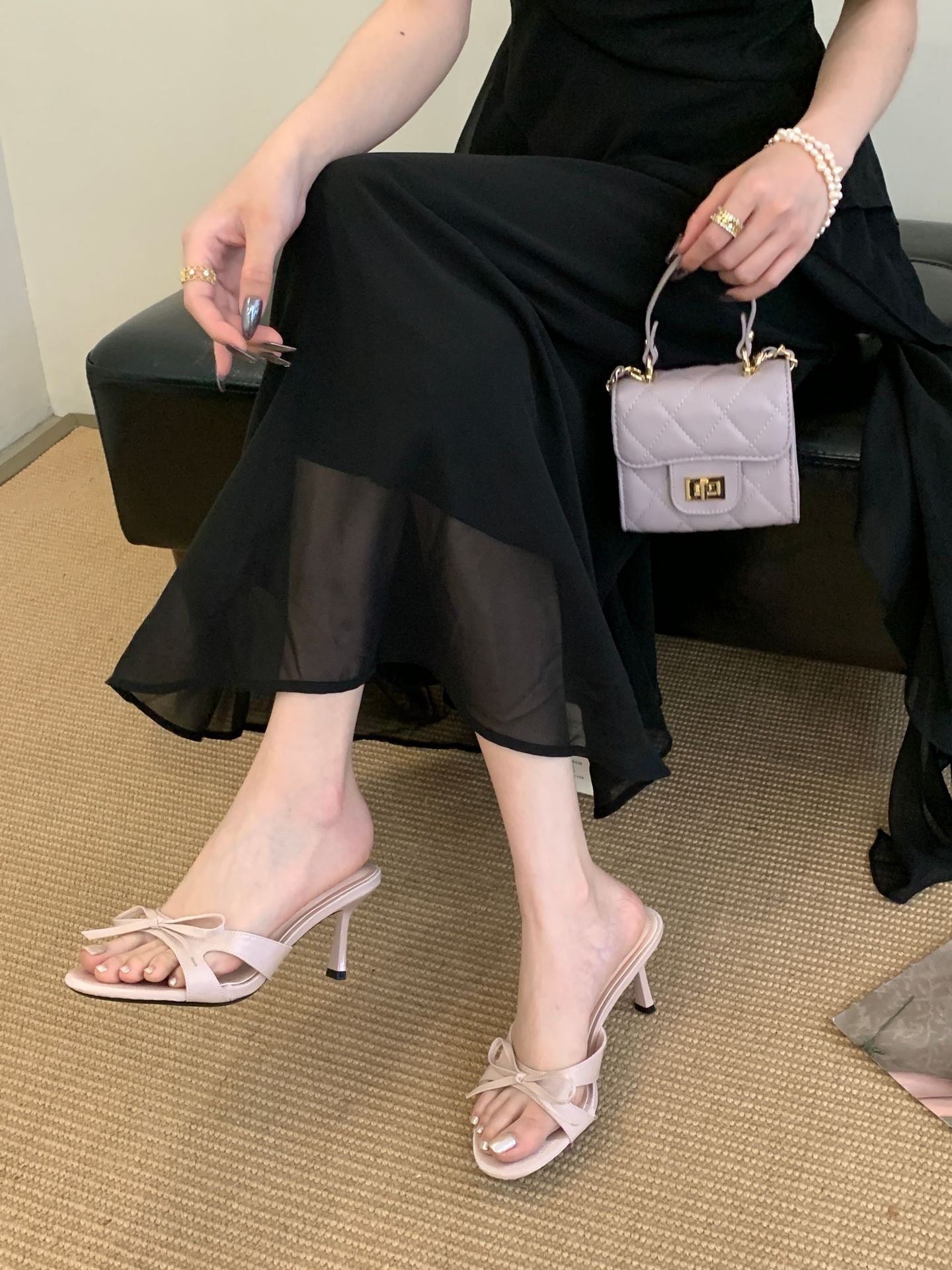 2025 봄과 가을 새로운 패션 다목적 기질 새틴 크로스 스트랩 스틸레토 샌들 여성용 외부 착용 Bowknot스토어 가기