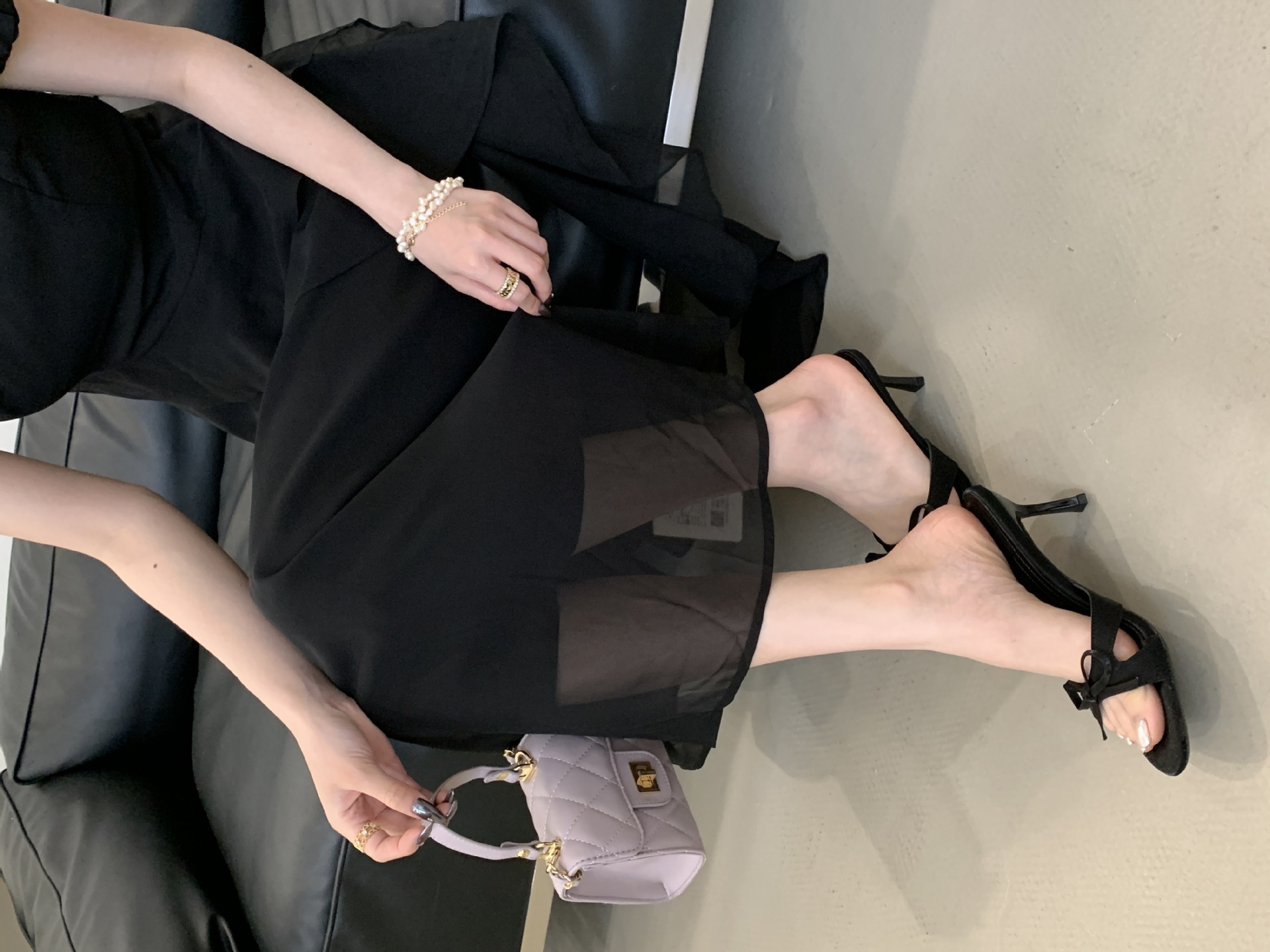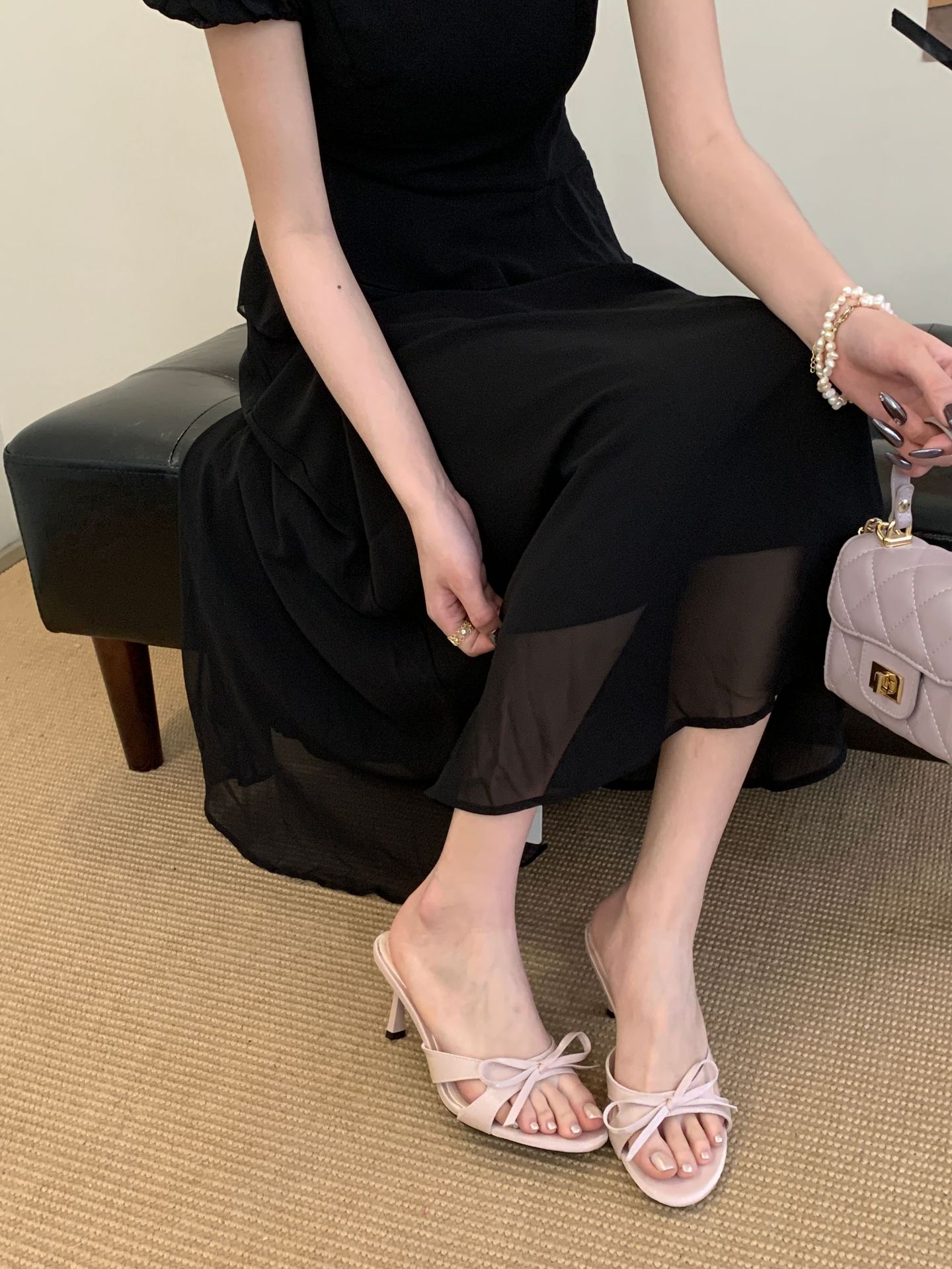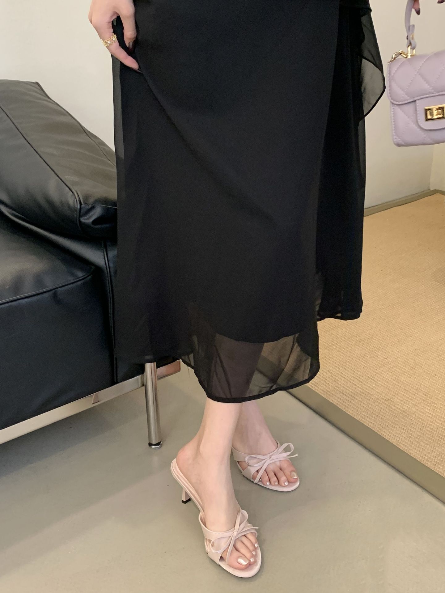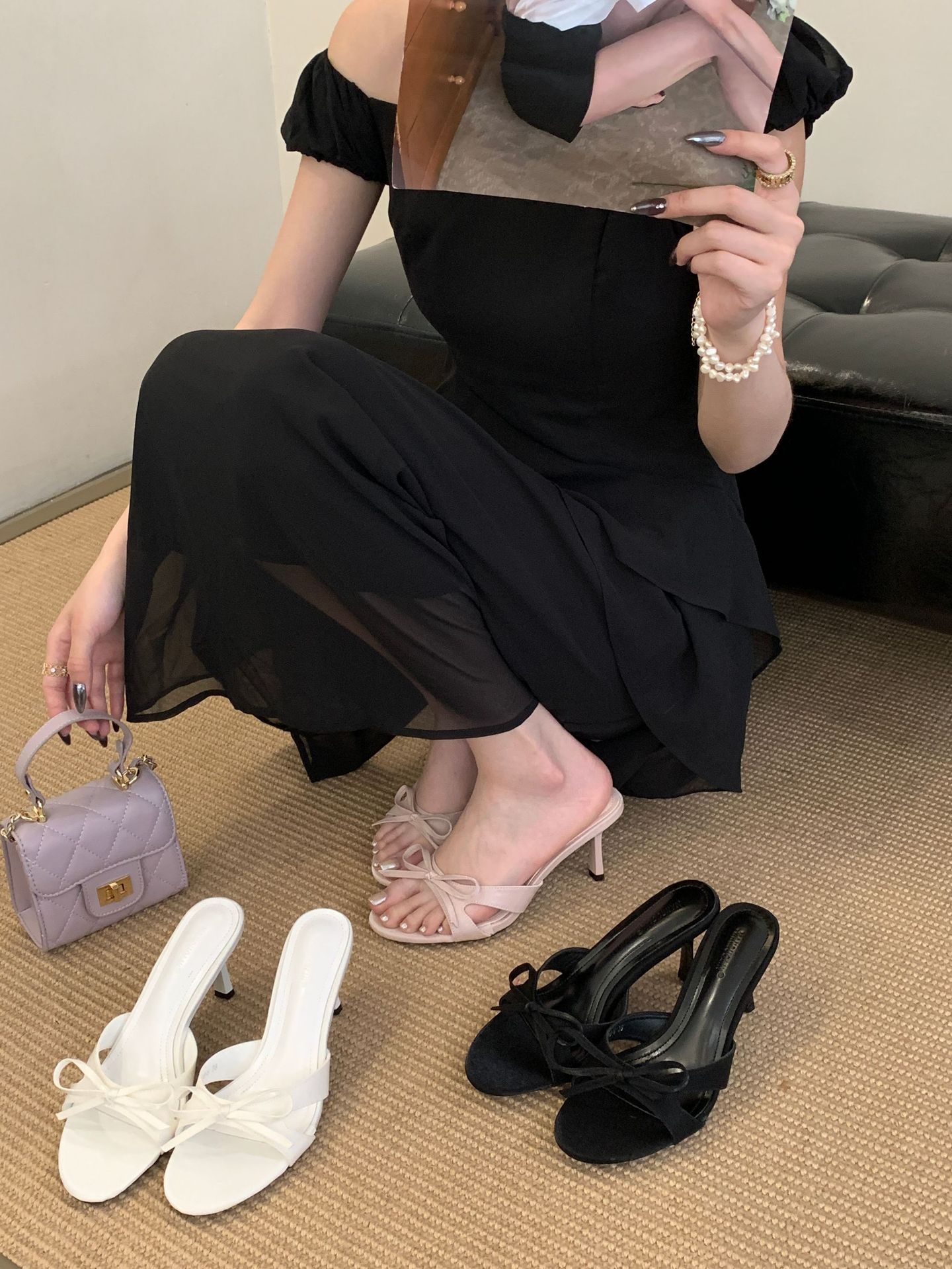 2025 봄과 가을 새로운 패션 다목적 기질 새틴 크로스 스트랩 스틸레토 샌들 여성용 외부 착용 Bowknot스토어 가기