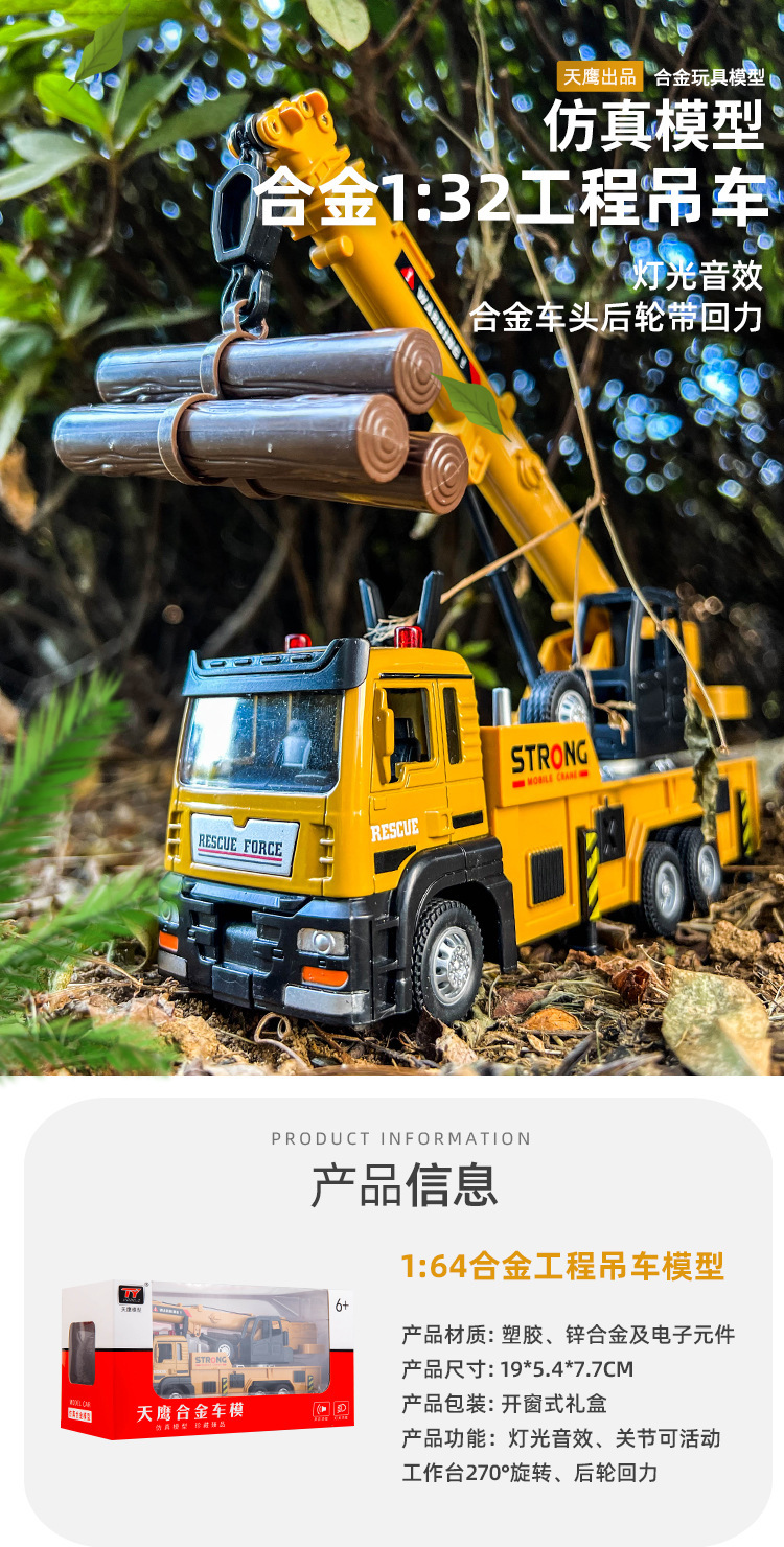 소년을위한 대형 크레인 장난감 엔지니어링 차량 크레인 굴삭기 어린이 합금 자동차 모델 덤프 트럭 선물스토어 가기