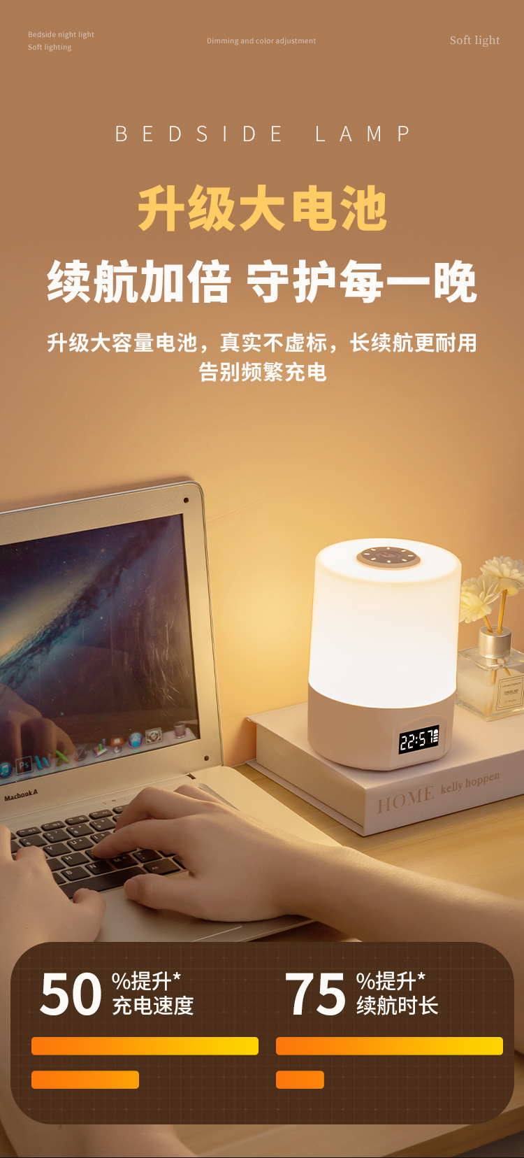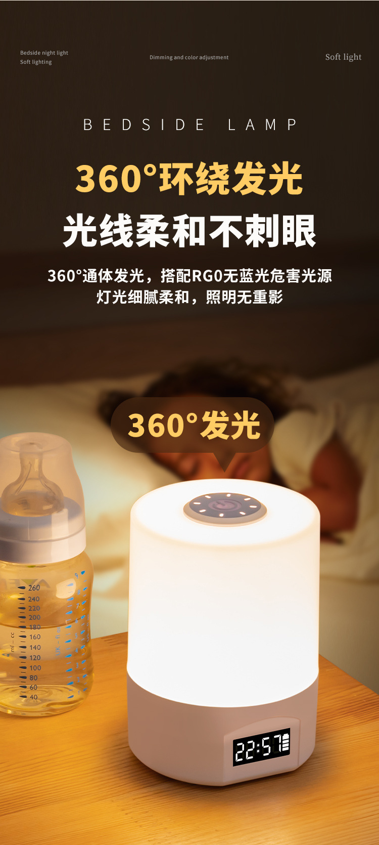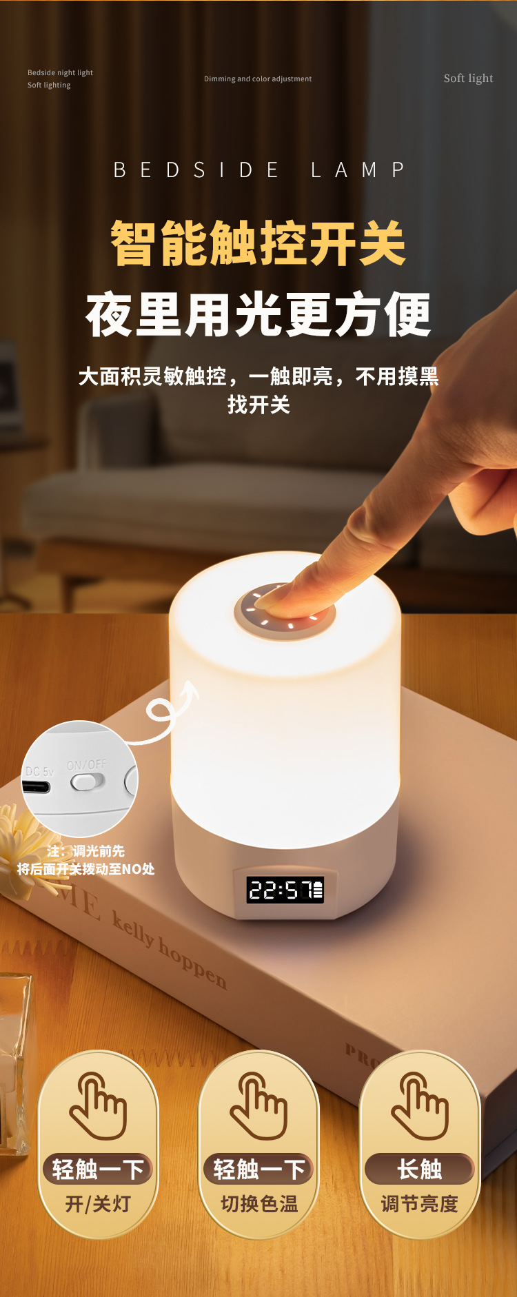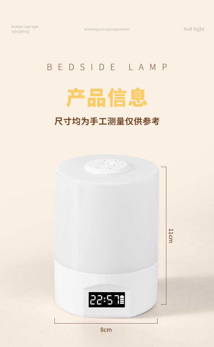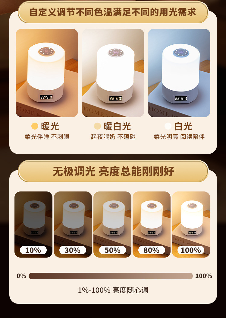 • 충전 및 연결 겸용 [터치 스위치 + 시간 표시 + 3가지 색온도 + 무단계 디밍]