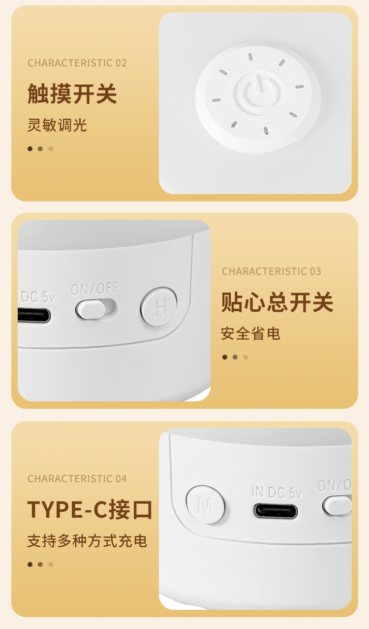 • 충전 및 연결 겸용 [터치 스위치 + 3가지 색온도 + 무단계 디밍]