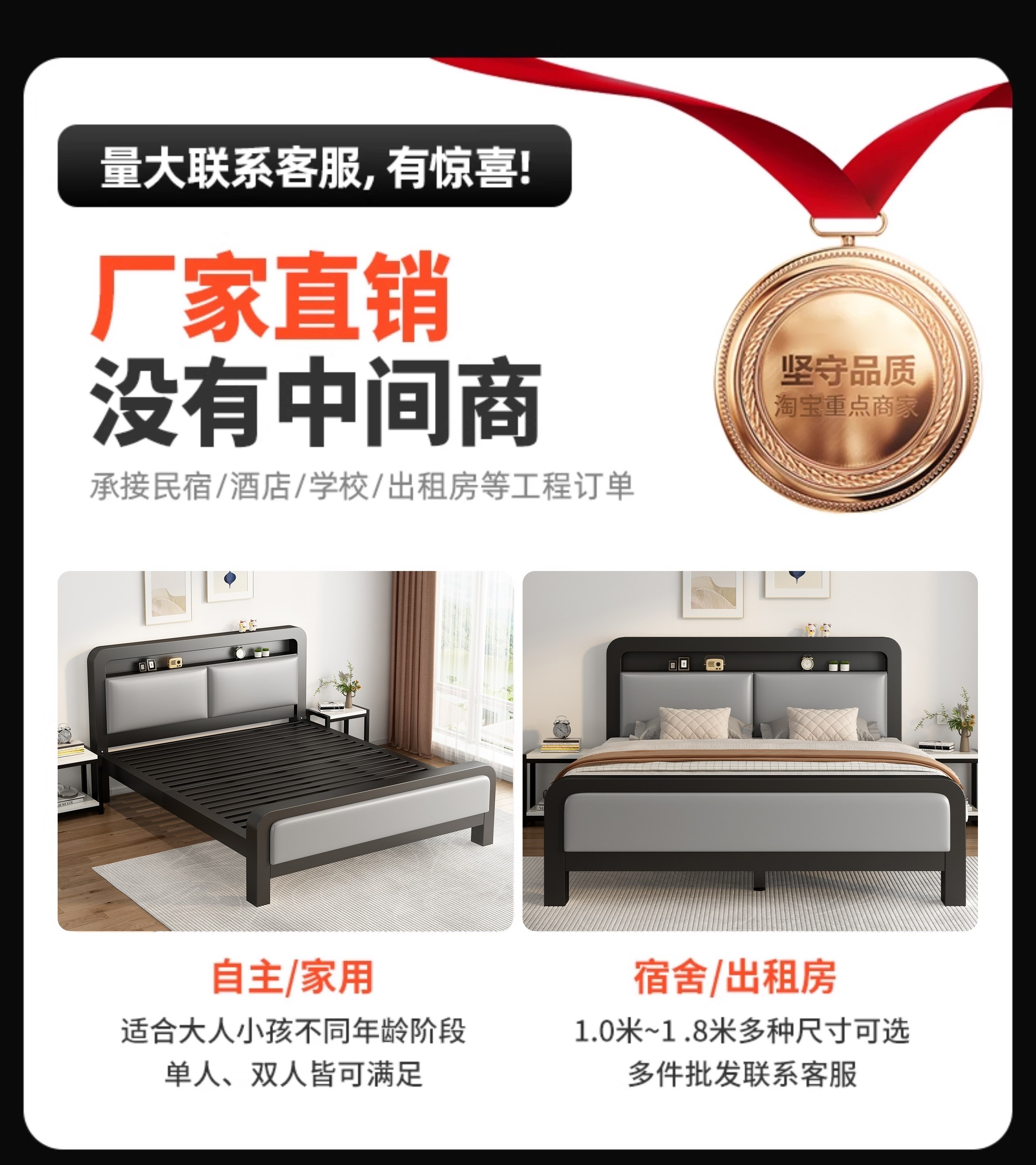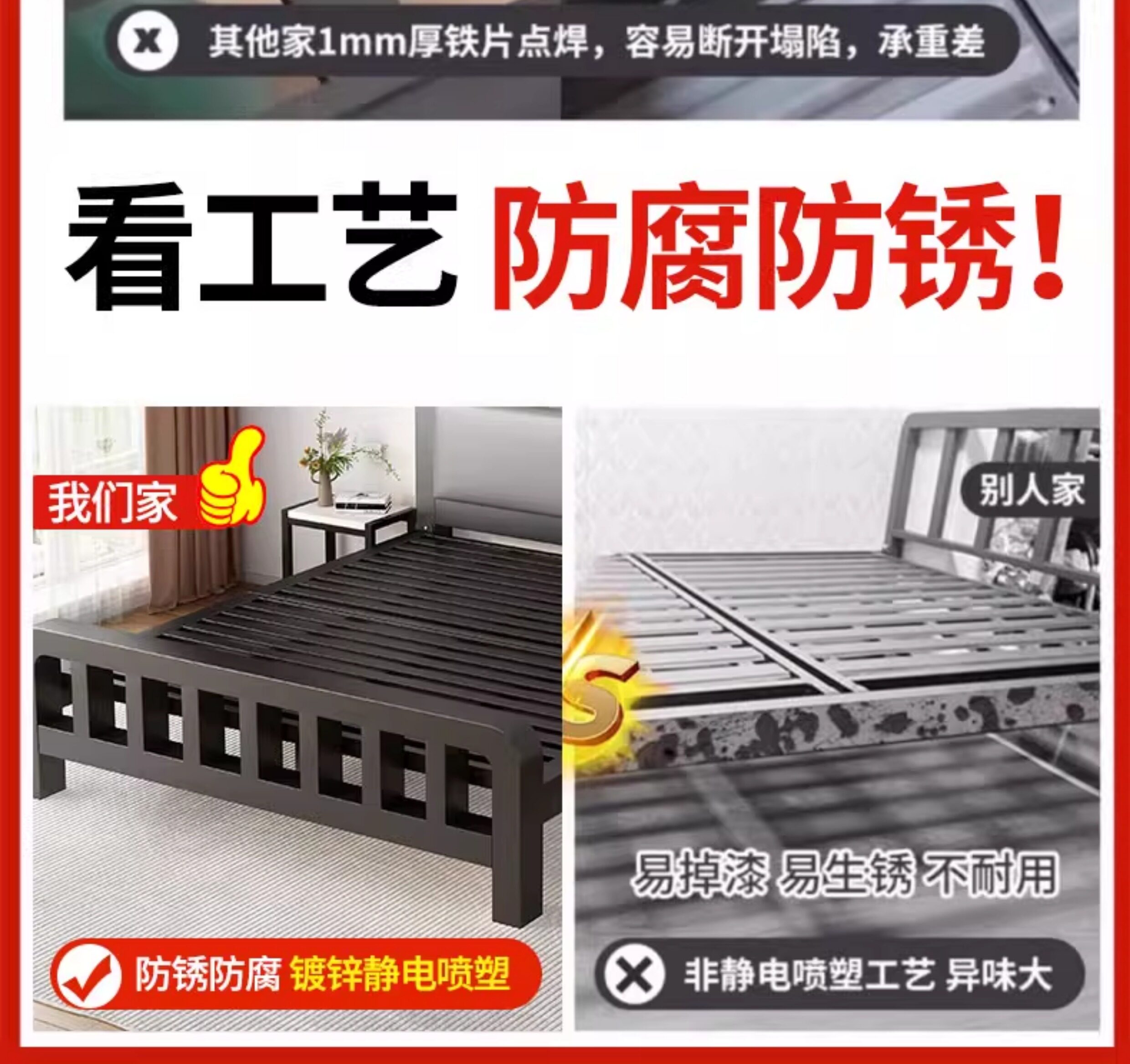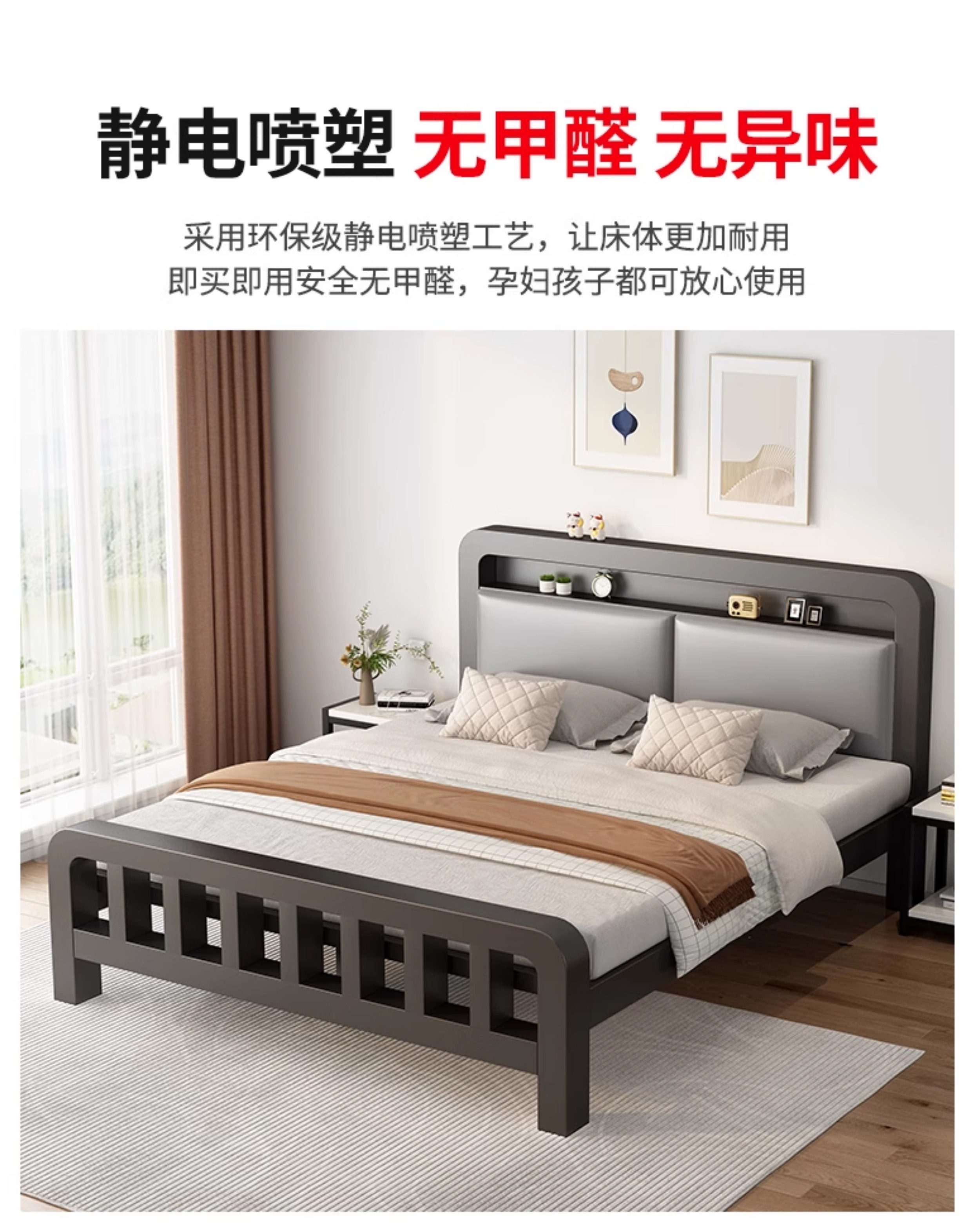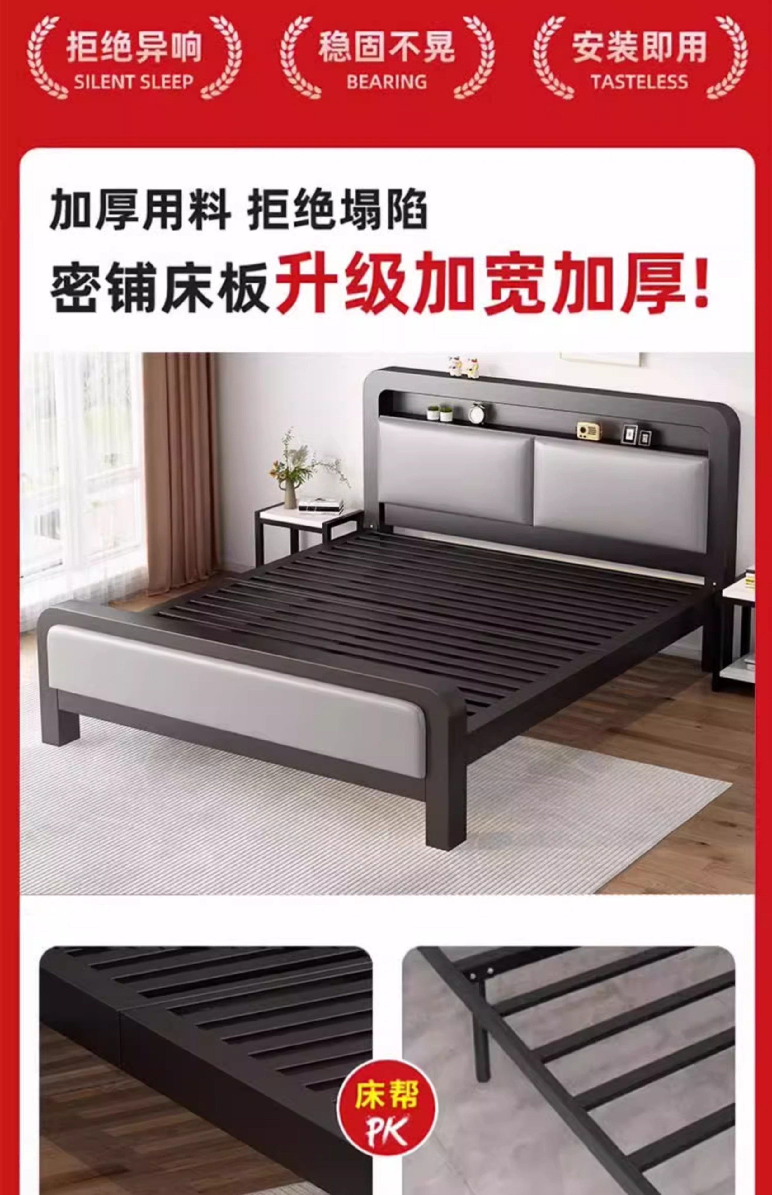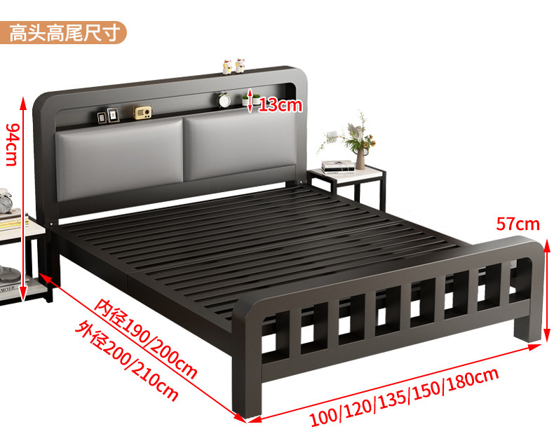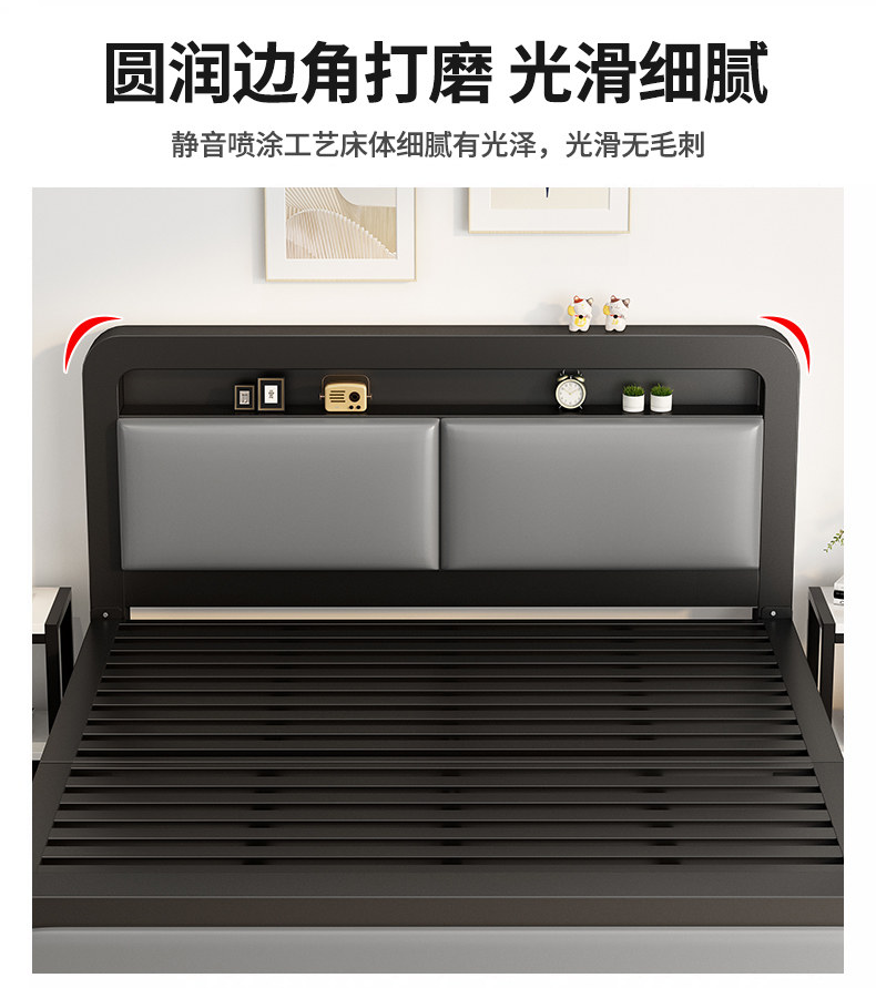 단철 침대 더블 침대 가정용 스테인레스 스틸 1.8m 두꺼운 강화 싱글 침대 프레임 기숙사 임대실 철제 프레임 침대스토어 가기