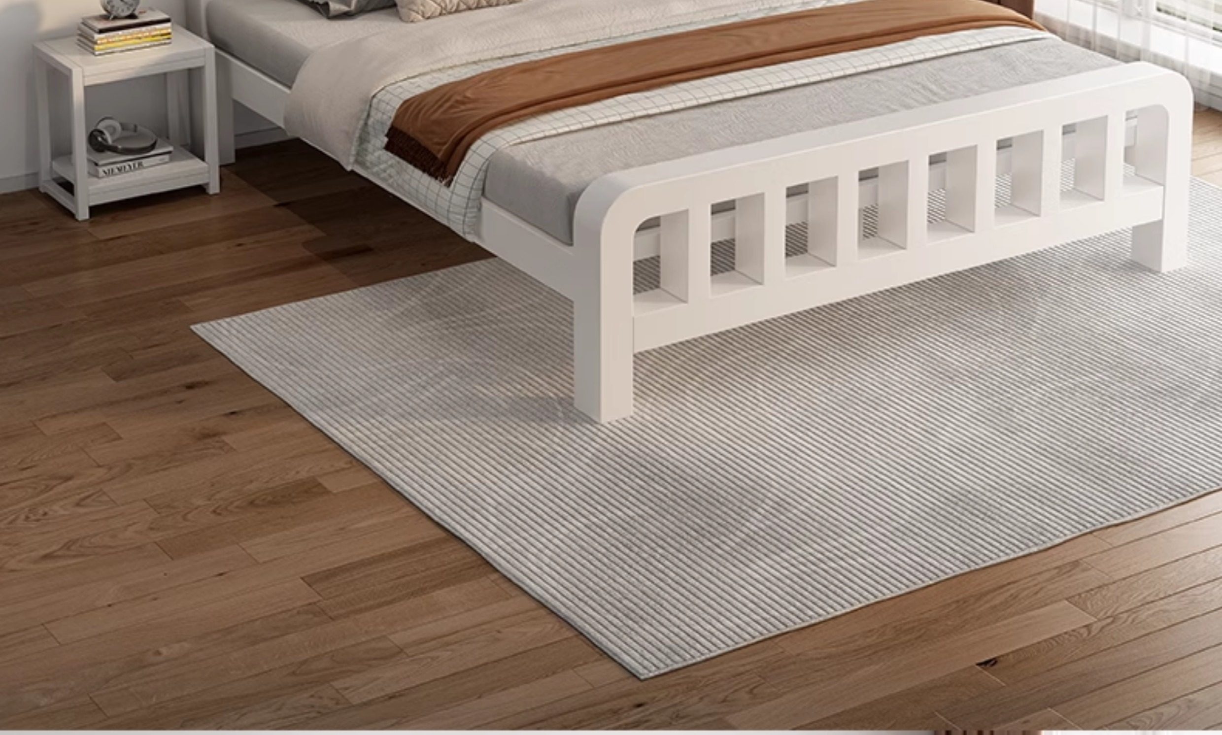 • [플랫테일 스타일] 화이트 침대 프레임 + 그레이 소프트백
