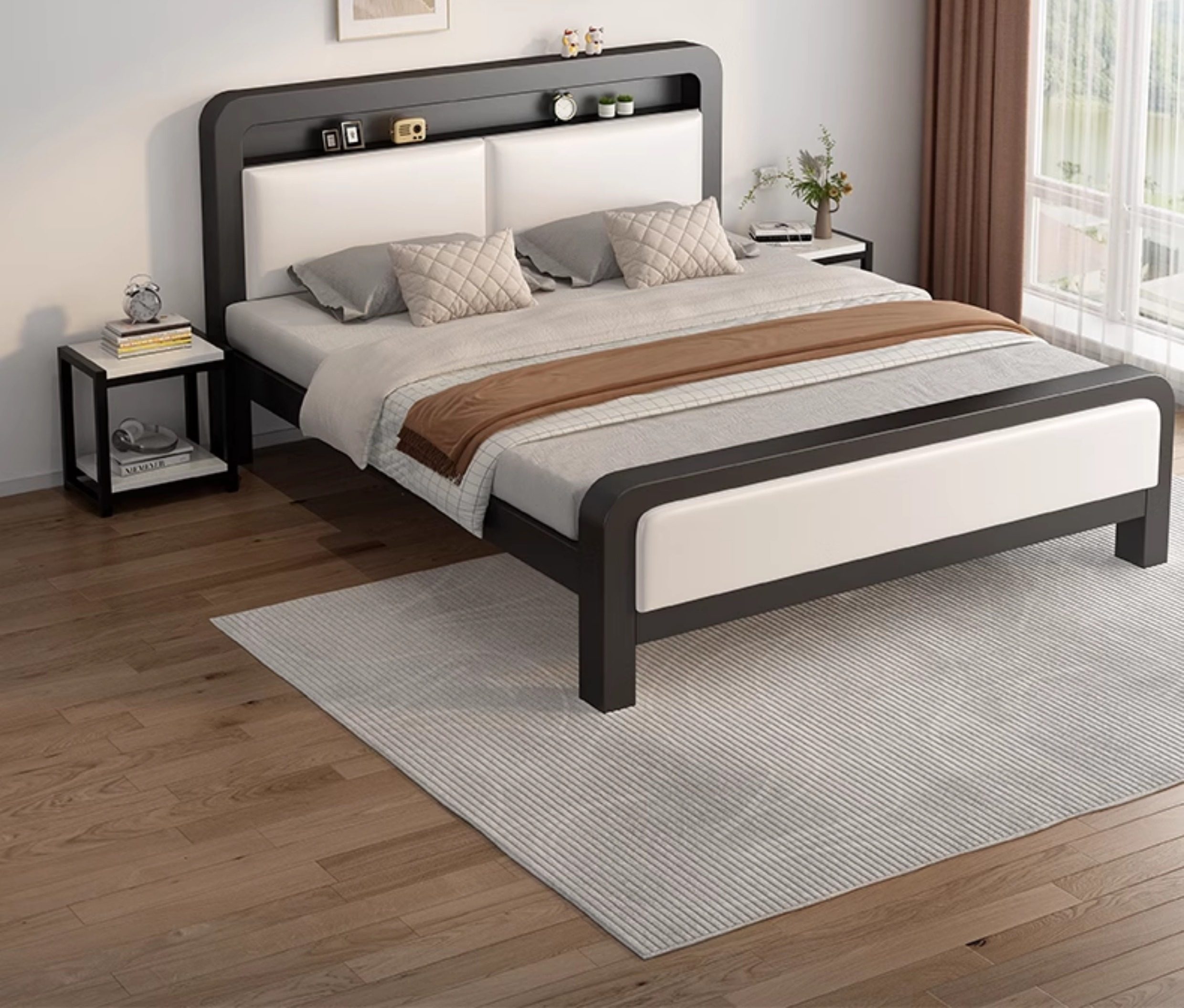 • [하이엔드 스타일] 블랙 침대 프레임 + 화이트 소프트백