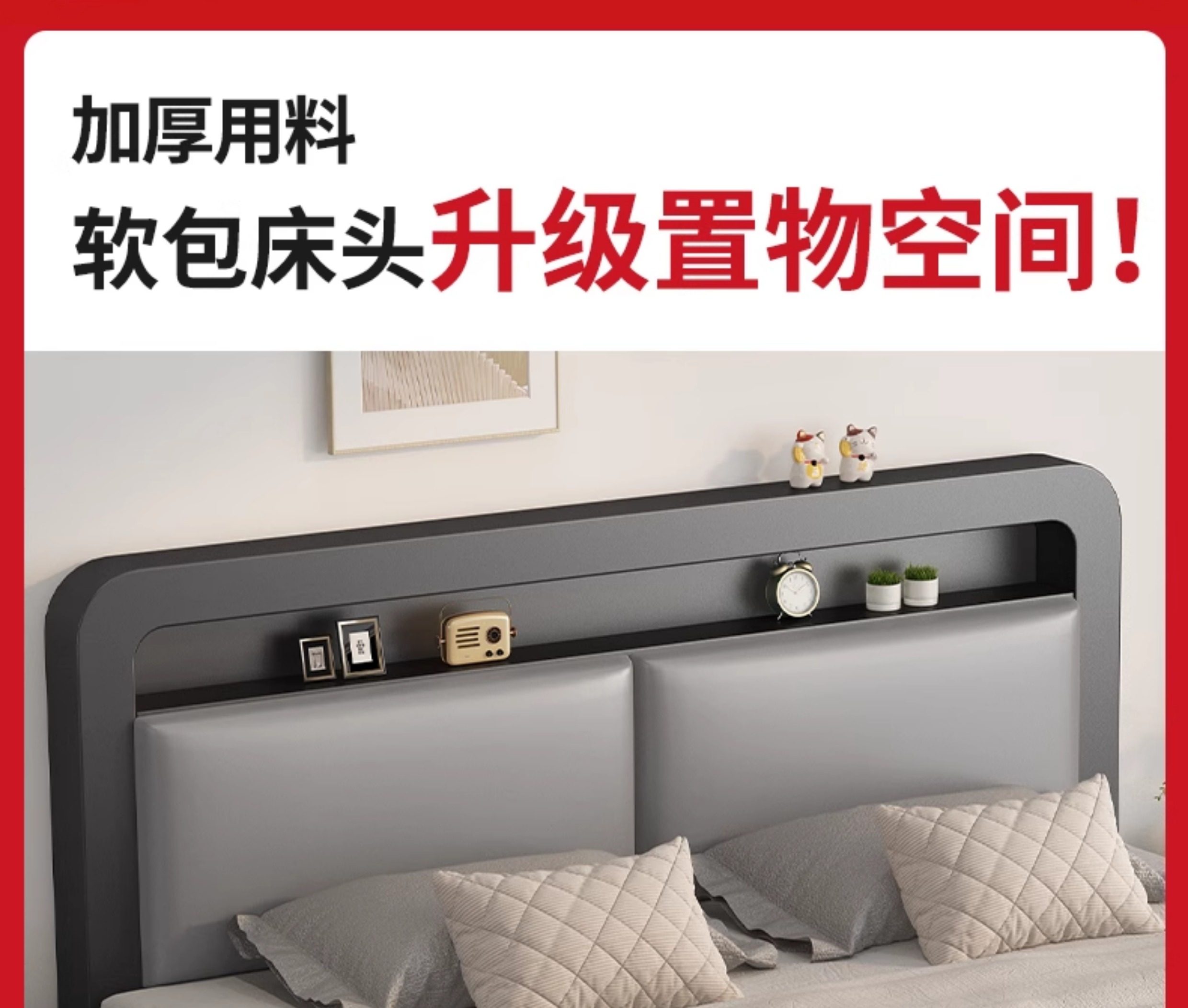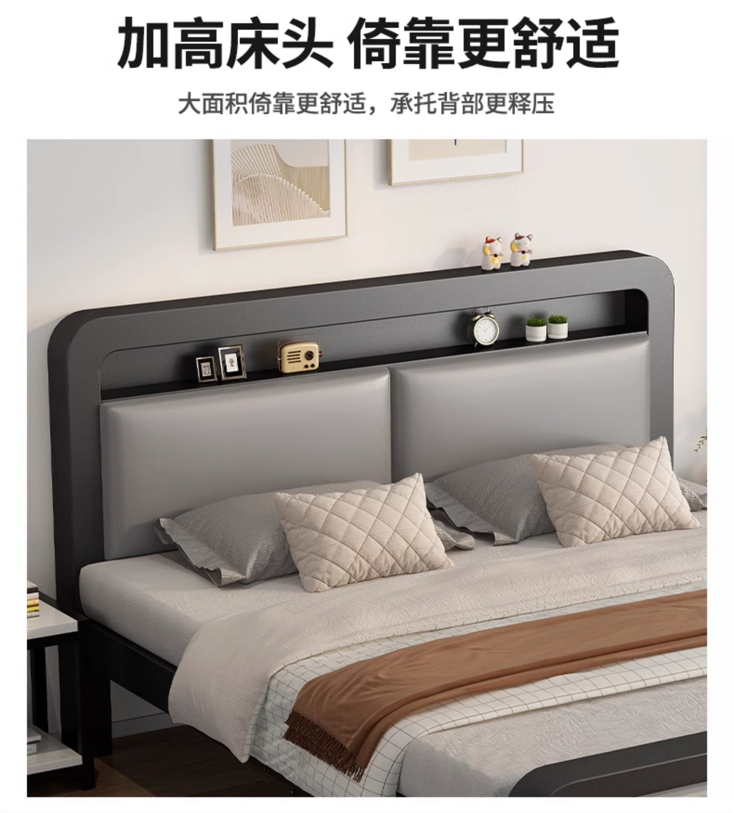 • [하이엔드 스타일] 블랙 침대 프레임 + 그레이 소프트백