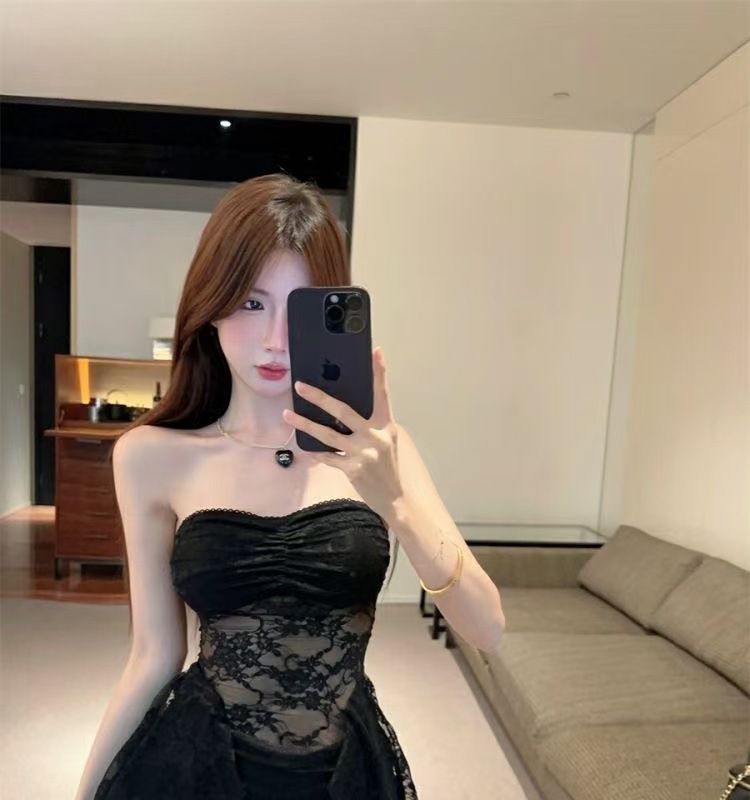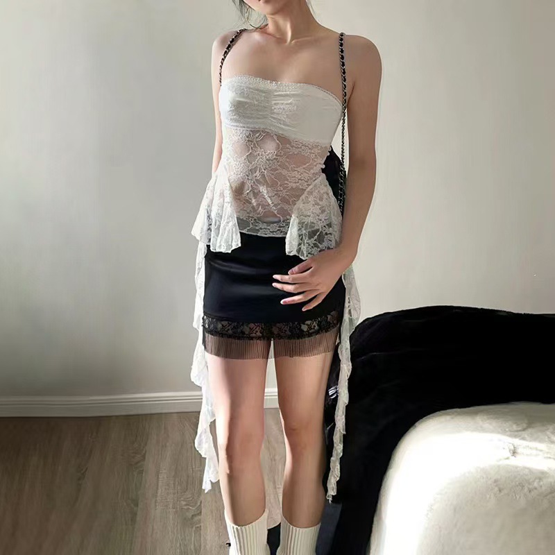 2024 봄 신작 여성 패션 섹시한 레이스 랩 가슴 메쉬 배꼽 노출 조끼 크로스 보더 유럽과 미국 스타일 탑스토어 가기