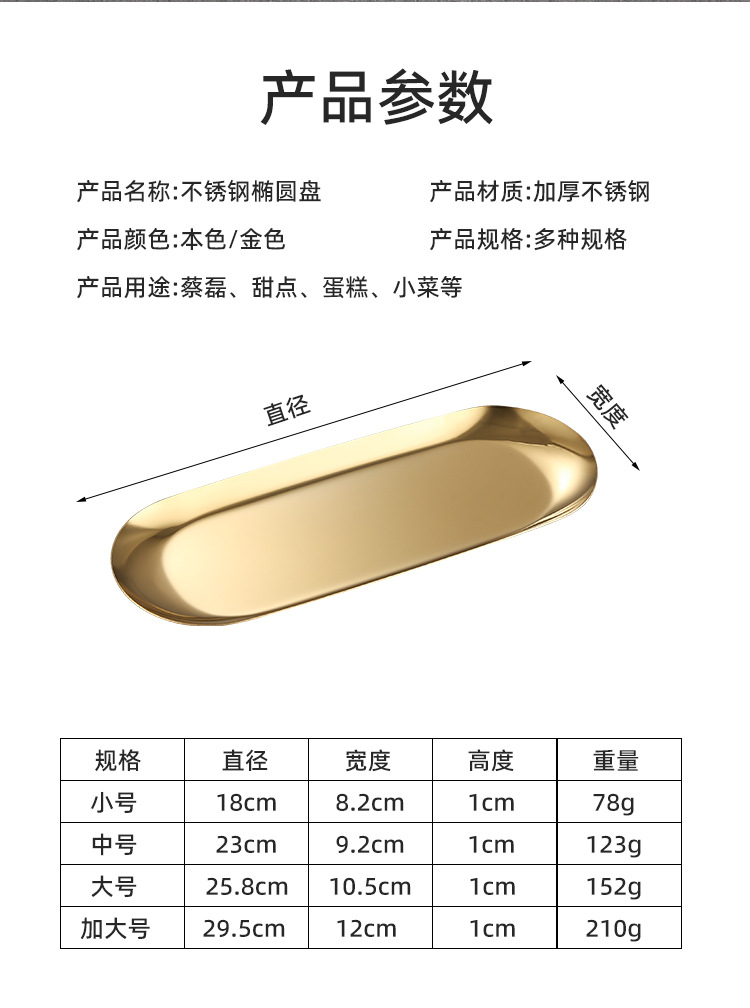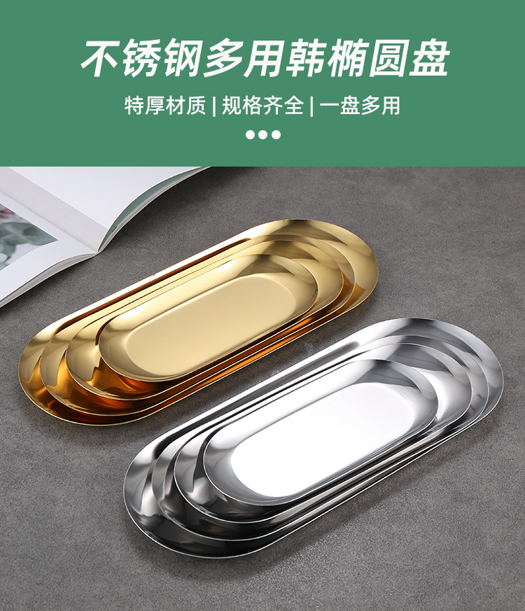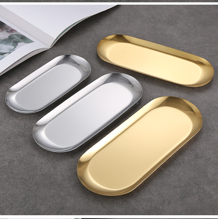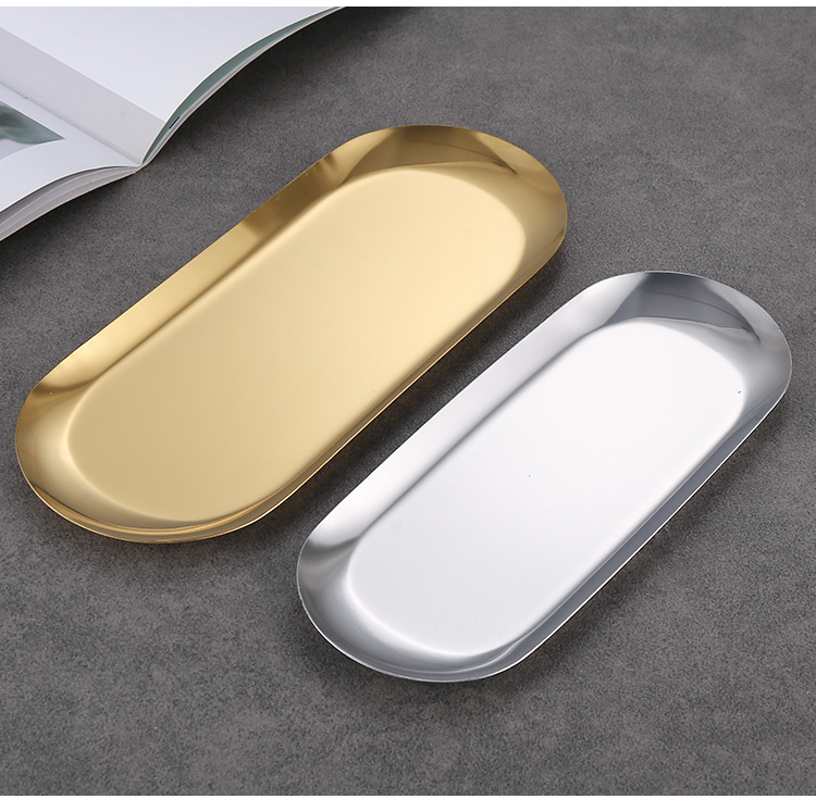 스테인리스 접시 수건 접시 타원형 접시 레스토랑 보석 보관 평평한 금색 작은 트레이 레트로 스타일 가정용 식기스토어 가기