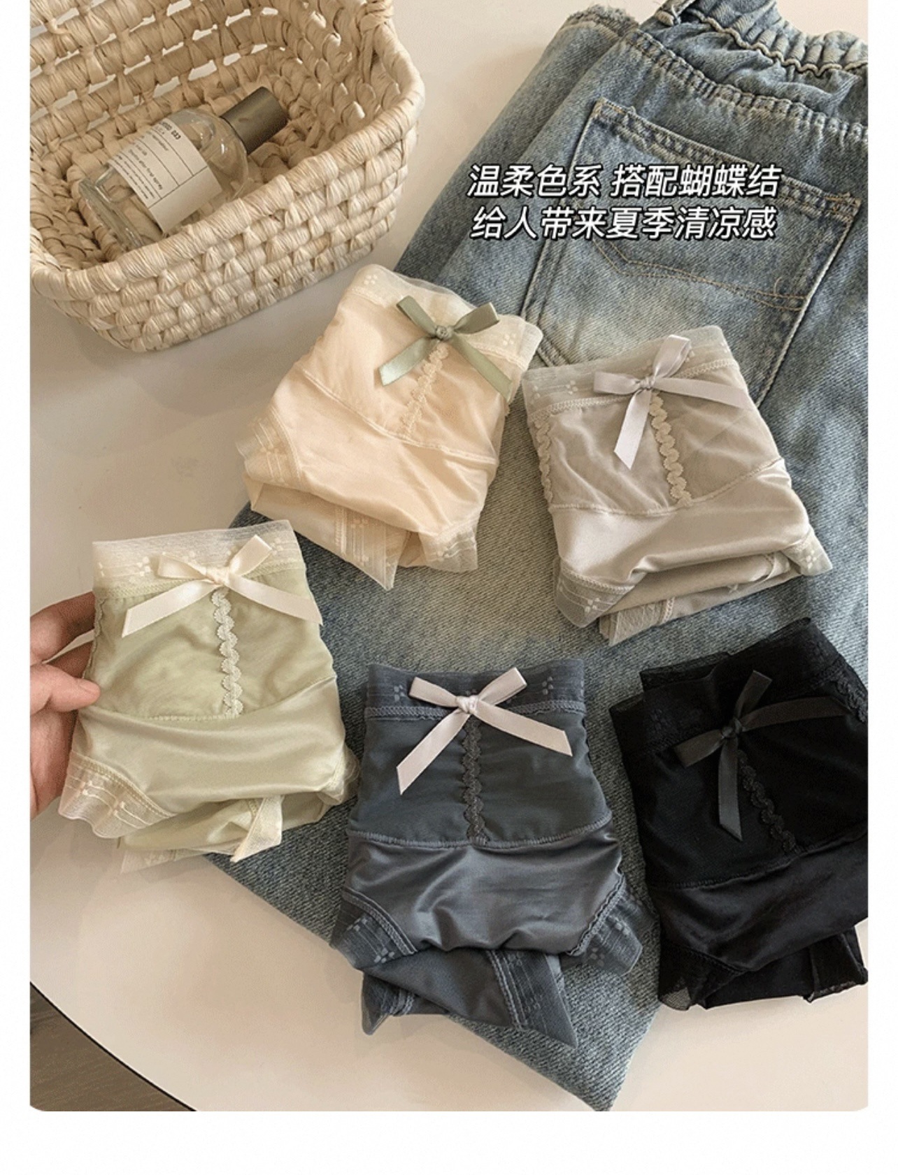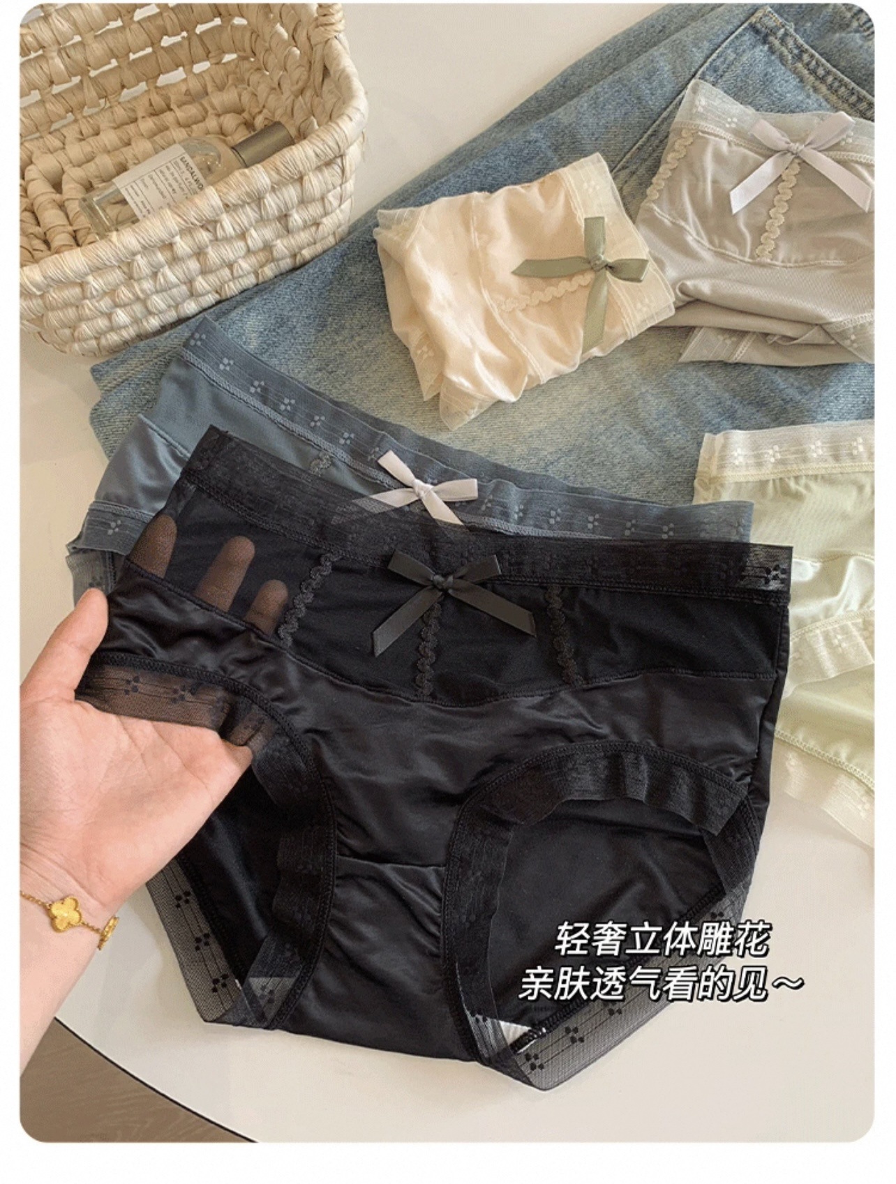 여자를위한 프랑스 튤립 ~ 순수한 새틴 레이스 속옷 여름 얇은 통기성 섹시한 이음매없는 팬티