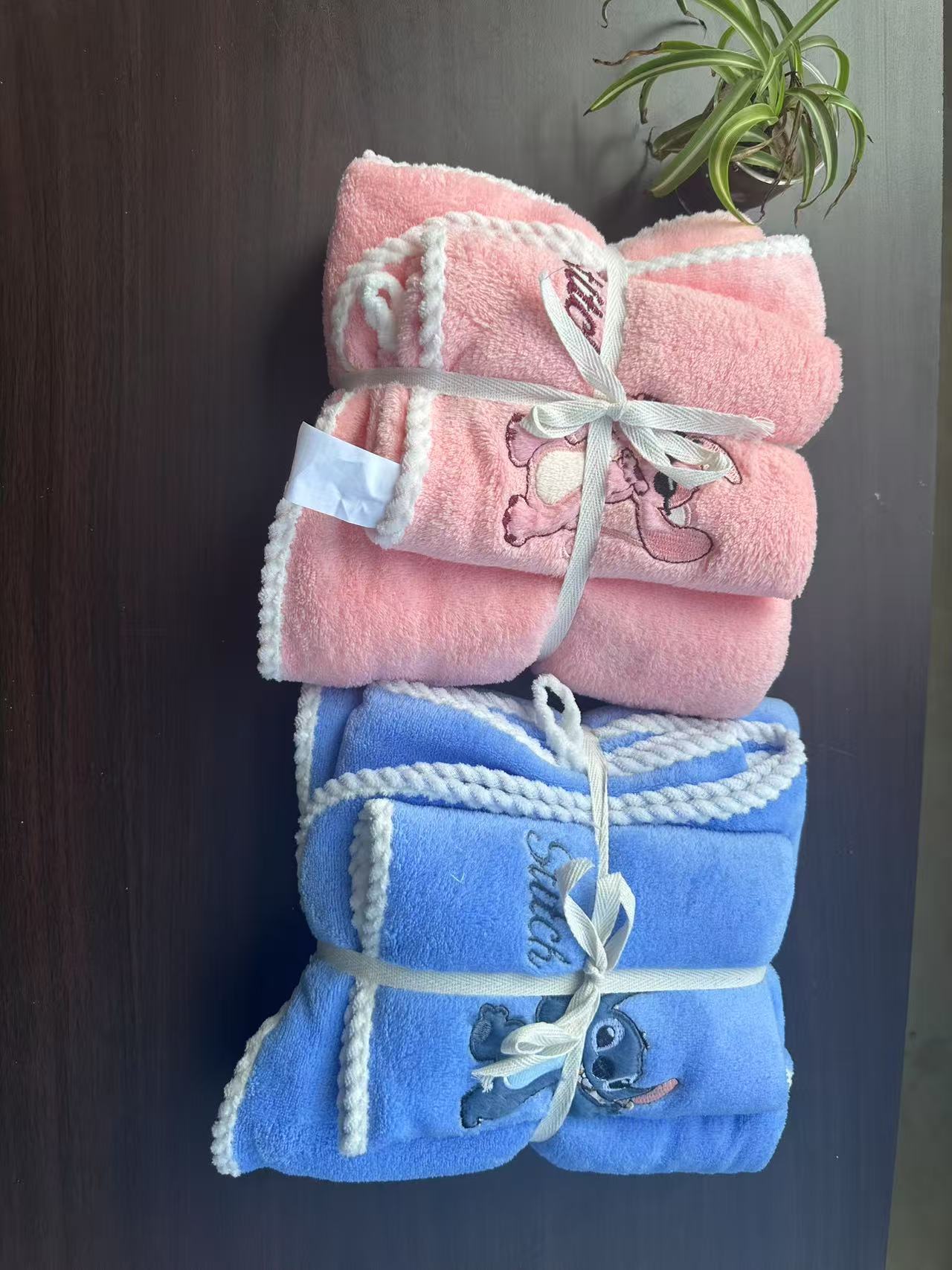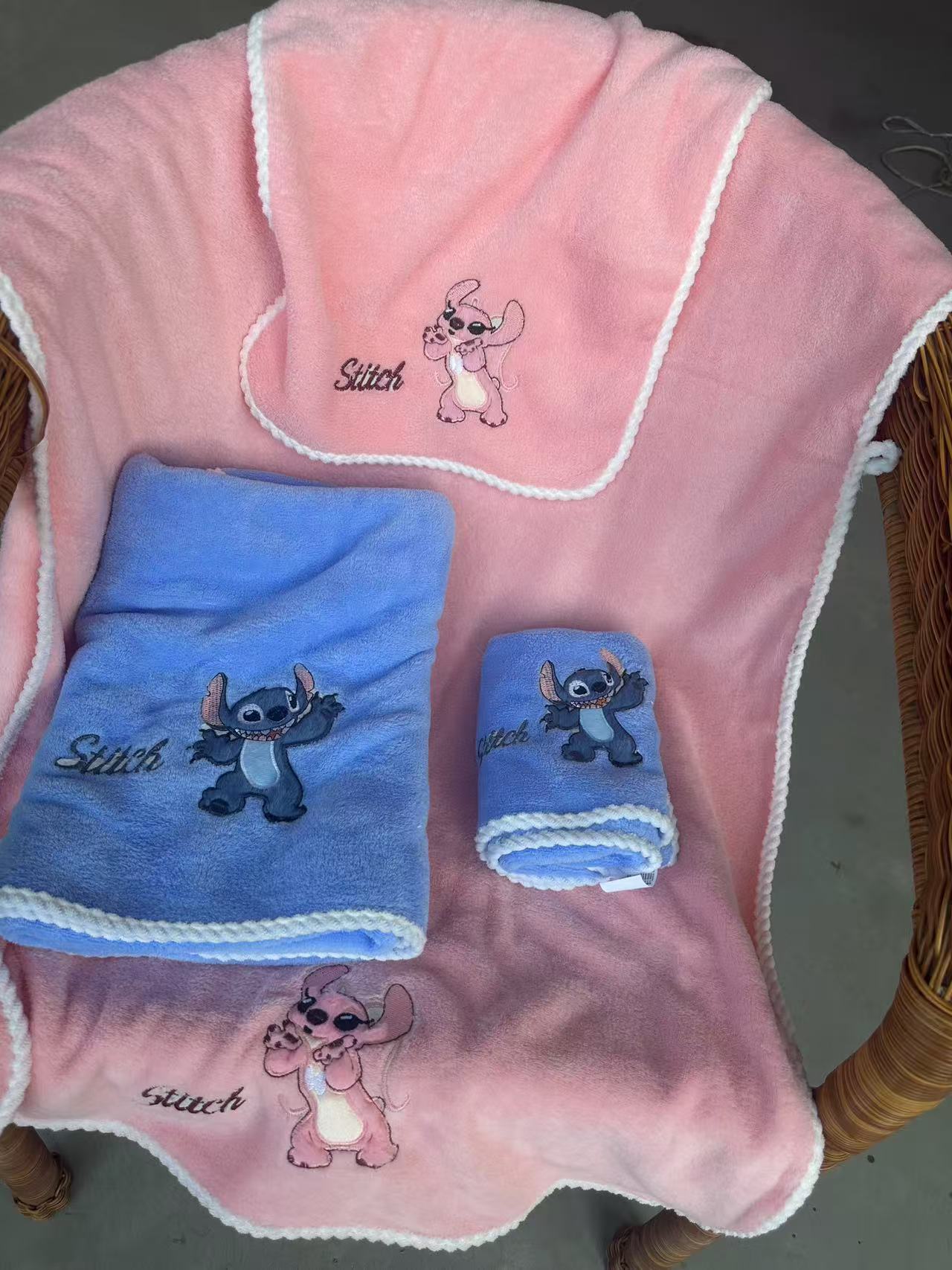 산호 벨벳 만화 작은 괴물 스티치 수건 목욕 수건 두꺼운 커플 모델 흡수성 속건성 홈 선물