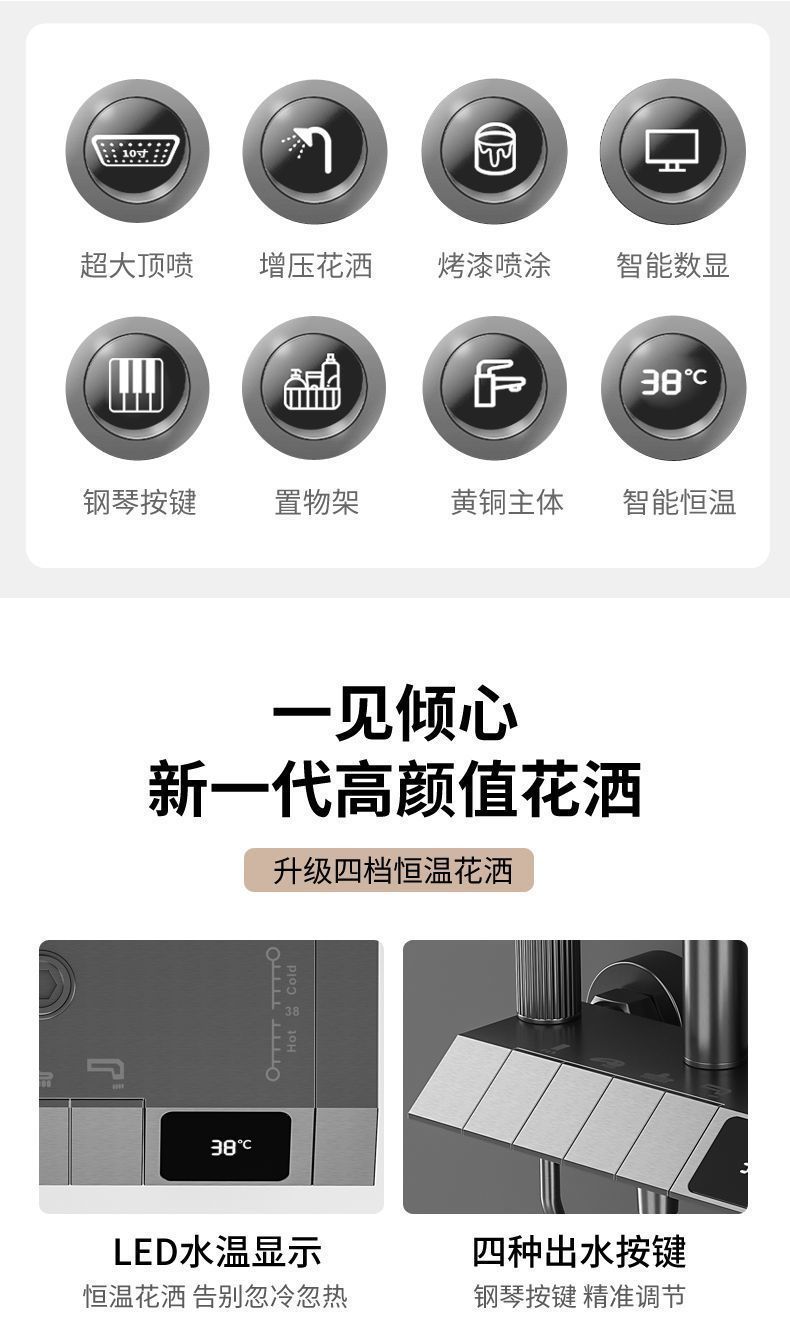 • 건 그레이 - 4스톱 피아노 건반 - 주변광 디지털 디스플레이 유리 패널 - 뜨겁고 차가운 스타일