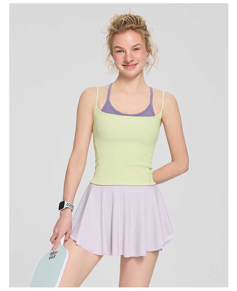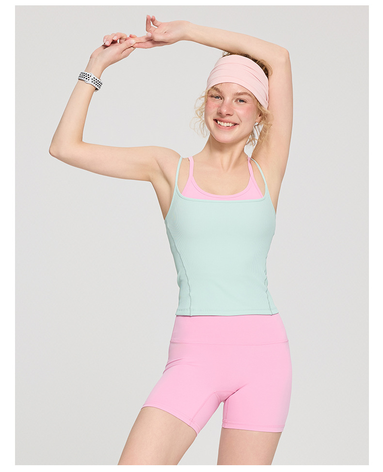 가을 겨울 신상 여성용 요가복, 고정컵 스포츠 브라, 레이어드 통기성 골지 슬림핏 캐미솔, 피트니스웨어스토어 가기