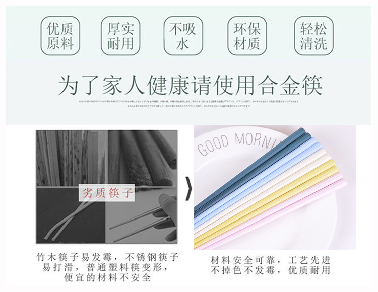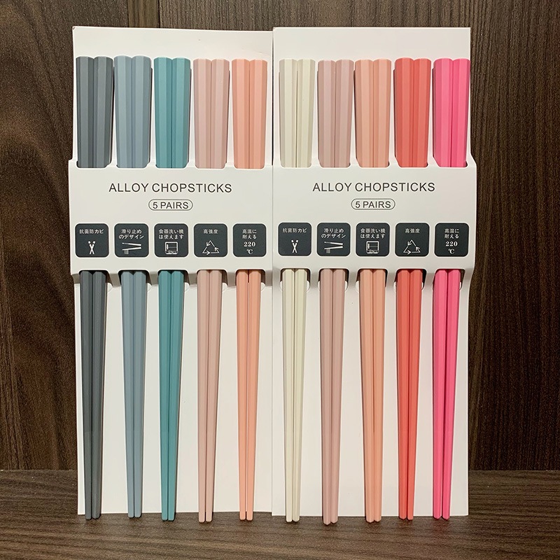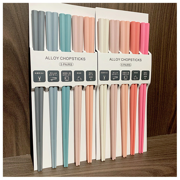 식기세척기 사용 가능 모란디 컬러 무도장 고온 방지 일본식 팔각형 젓가락 컬러 곰팡이 방지 합금 젓가락 세트
