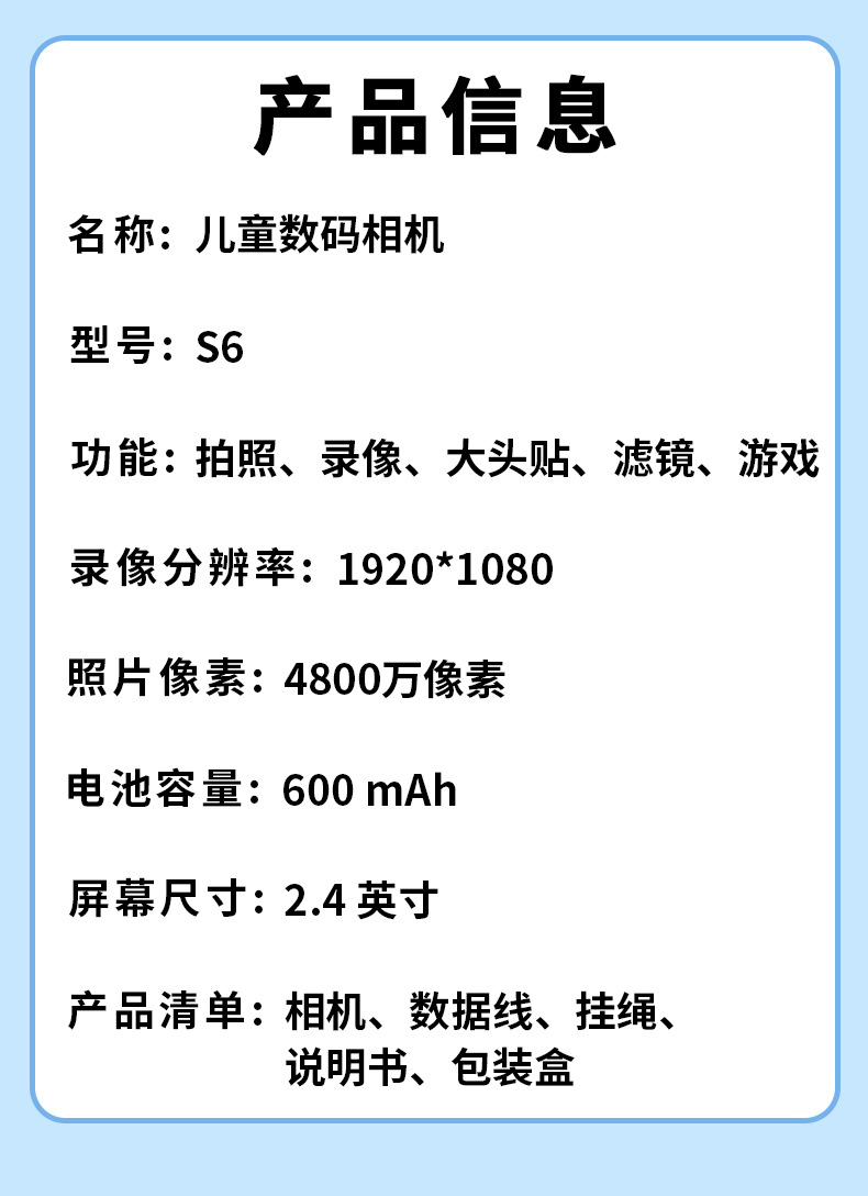 • S6 Yuanfeng 블루 카메라(카드 없음)