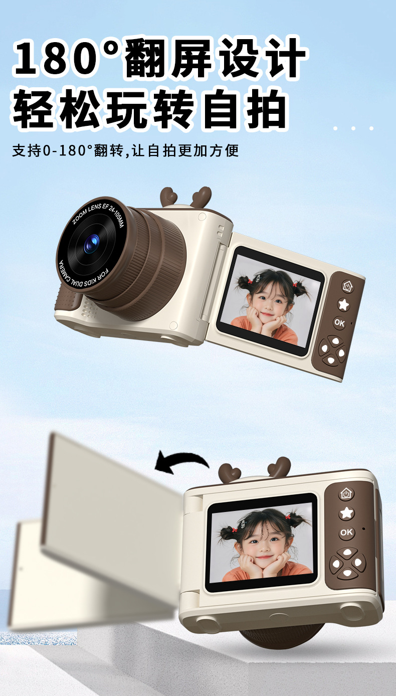 국경을 넘는 귀여운 어린이 카메라가 사진을 찍습니다. HD 듀얼 카메라 개폐식 렌즈 플립 스크린 디지털 카메라스토어 가기