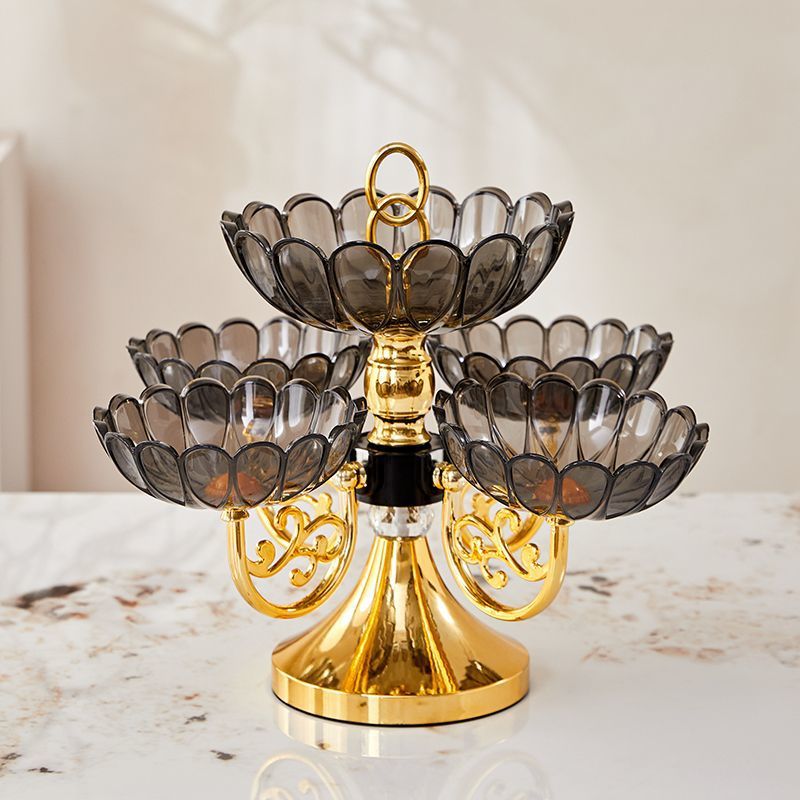 과일 접시 가정용 2024 새로운 회전 가능한 다층 거실 과일 접시 간식 말린 과일 사탕 빛 고급 물 QS스토어 가기