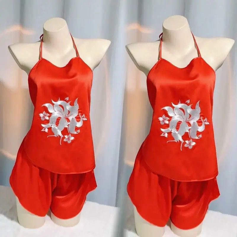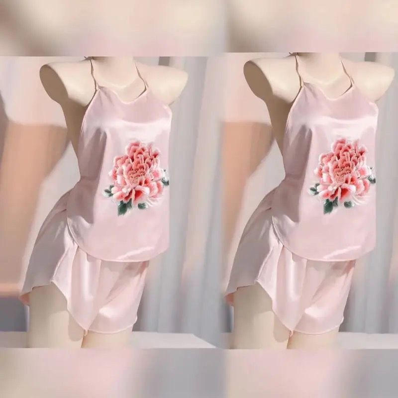 자수 배꼽 끈, 모조 실크, 성인 복고풍 중국 스타일 자수 속옷, 여성용 얼음 실크 서스펜더 잠옷, 배꼽 끈, 국경 간 핫스토어 가기