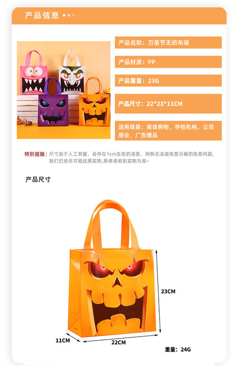 국경 간 할로윈 표현 얼굴 호박 유령 유령 축제 어린이 부직포 포장 휴대용 방수 사탕 선물 가방
