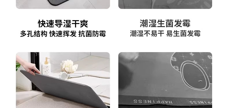 하드 규조토 진흙 바닥 매트, 욕실 욕실 흡수성 매트, 미끄럼 방지 속건성 바닥 매트, 집 입구 문 매트 도매스토어 가기