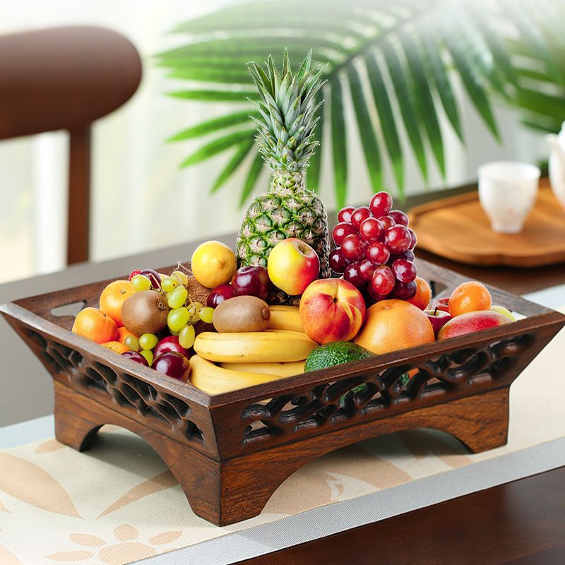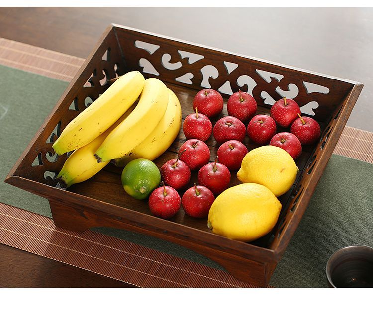 태국 수입 과일 플레이트 나무 중국 스타일 거실 창조적 인 빈티지 단단한 나무 과일 플레이트 커피 테이블 식탁 간단한 말린 과일 플레이트