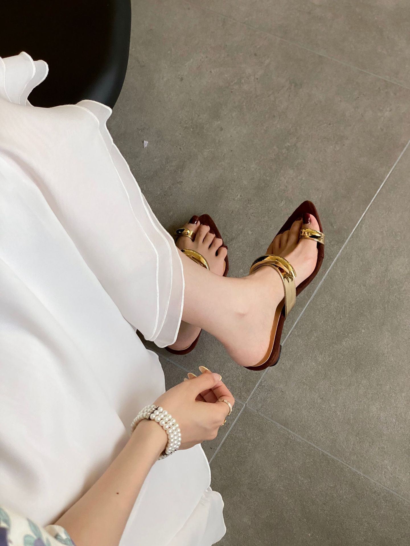 우아한 포인티드 토 메탈 원라인 반슬리퍼 2025 뉴 웨지 미드힐 뮬 슬리퍼