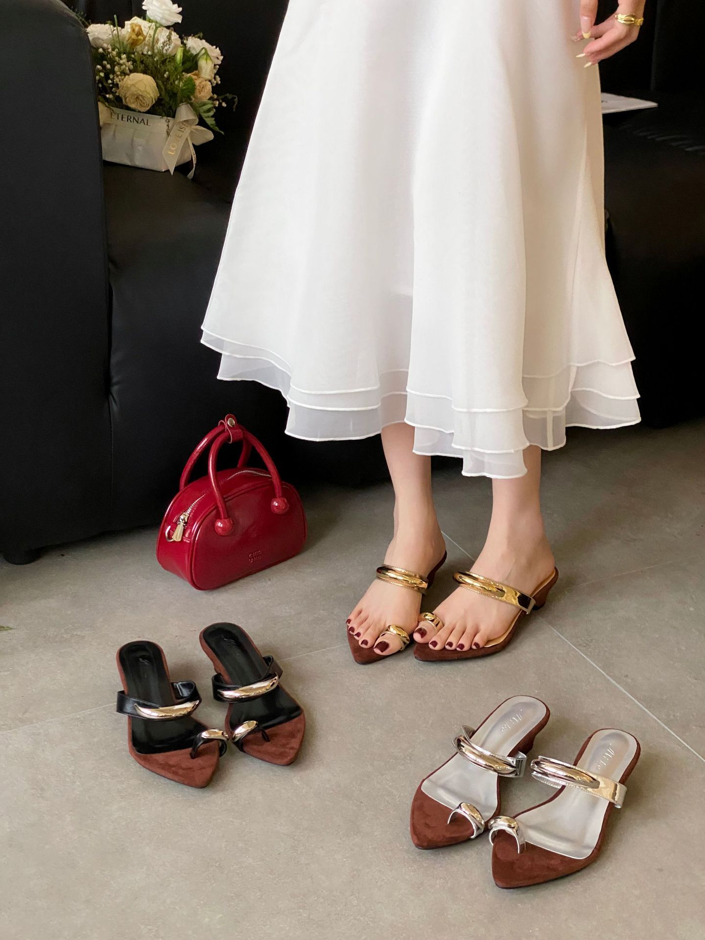 우아한 포인티드 토 메탈 원라인 반슬리퍼 2025 뉴 웨지 미드힐 뮬 슬리퍼스토어 가기