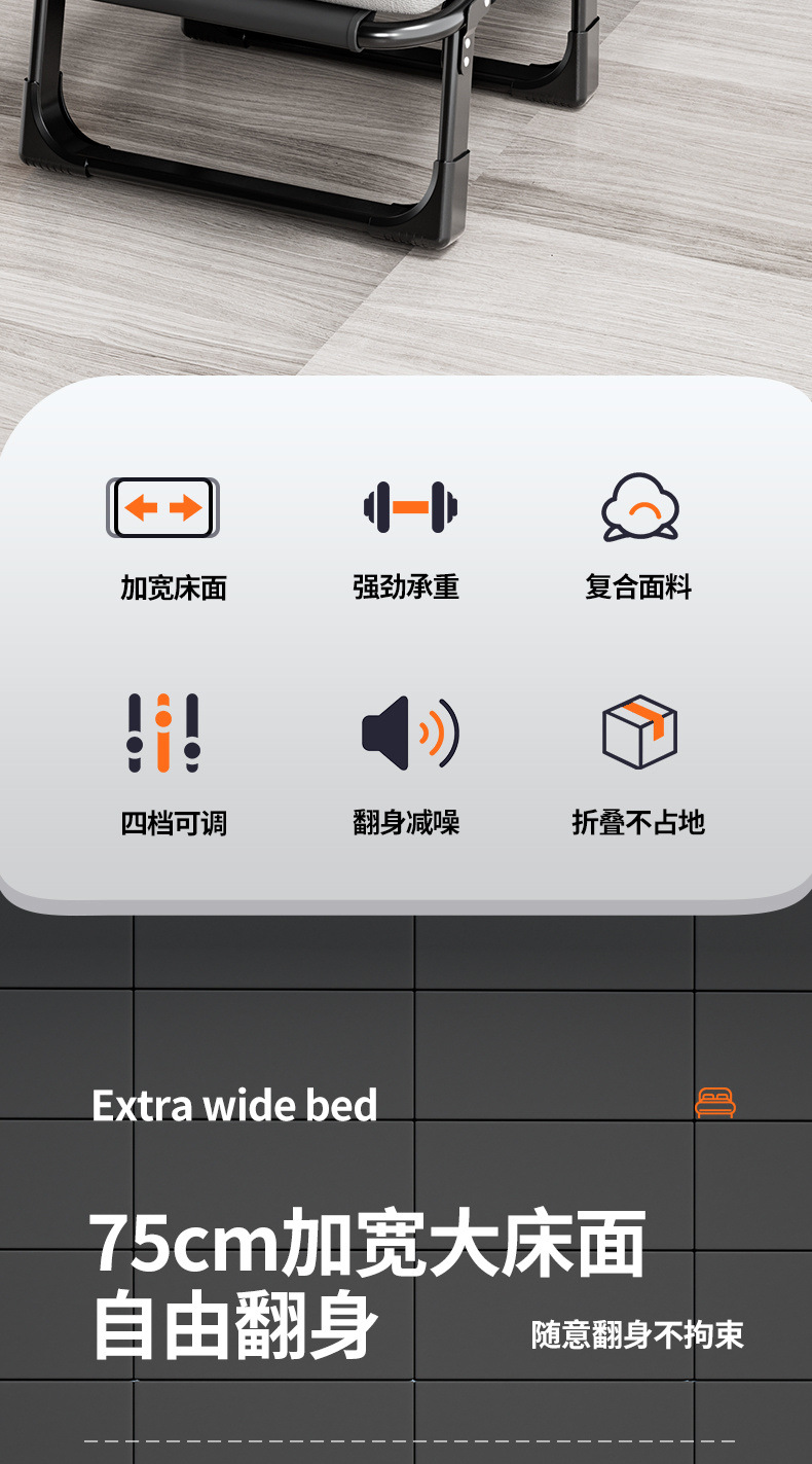 가벼운 접이식 침대 싱글 침대 가정용 성인 점심 시간 안락 의자 사무실 침대 캠프 휴대용 컴팩트